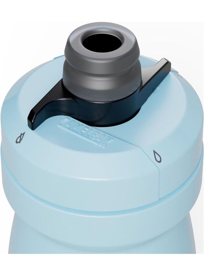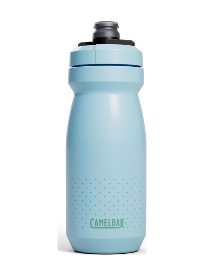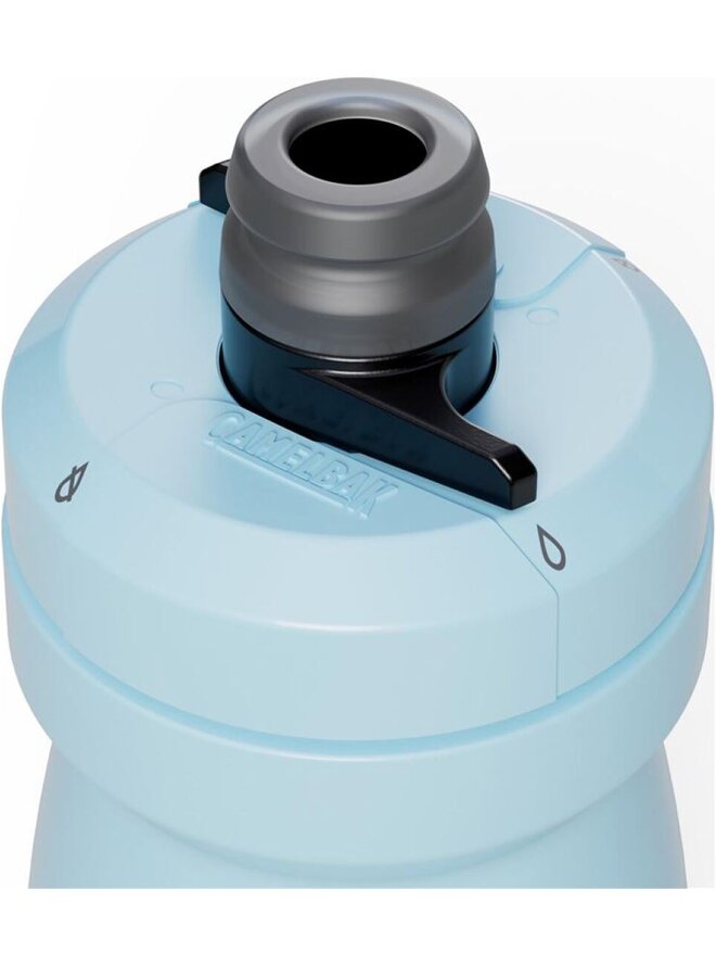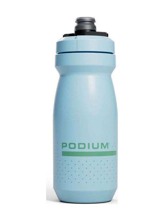 Butelki CamelBak Podium są wykonane z polipropylenu niezawierającego BPA, BPS i BPF, co zapewnia realistyczny smak bez posmaku plastiku. Dzięki opatentowanemu samozamykającemu się ustnikowi Jet Valve wykonanemu z silikonu klasy medycznej, woda z butelki nie kapie na ramę. Dodatkowo, butelka posiada w pełni odkręcaną zakrętkę (lock-out) do transportu pełnych butelek w torbie lub samochodzie. Zakrętkę i ustnik można łatwo zdemontować i wyczyścić. Dzięki idealnemu kształtowi butelka Podium jest łatwa do trzymania na rowerze, łatwa do ściśnięcia i nigdy nie zgubisz jej z koszyka. Podium to najwyższej jakości bidon rowerowy, który od dawna wyznacza standardy jakości. Pojemność 0,62 lSzczegóły