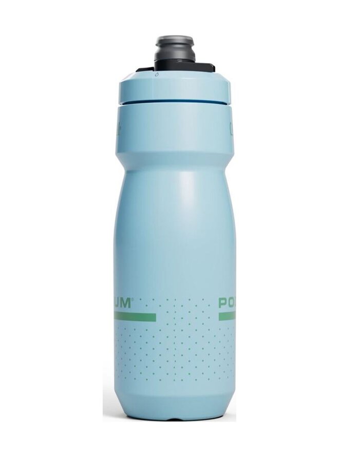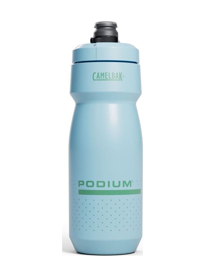 Butelki CamelBak Podium są wykonane z polipropylenu niezawierającego BPA, BPS i BPF, co zapewnia realistyczny smak bez posmaku plastiku. Dzięki opatentowanemu samozamykającemu się ustnikowi Jet Valve wykonanemu z silikonu klasy medycznej, woda z butelki nie kapie na ramę. Dodatkowo, butelka posiada w pełni odkręcaną zakrętkę (lock-out) do transportu pełnych butelek w torbie lub samochodzie. Zakrętkę i ustnik można łatwo zdemontować i wyczyścić. Dzięki idealnemu kształtowi butelka Podium jest łatwa do trzymania na rowerze, łatwa do ściśnięcia i nigdy nie zgubisz jej z koszyka. Podium to najwyższej jakości bidon rowerowy, który od wielu lat wyznacza standardy jakości. Pojemność 0,71 lSzczegóły