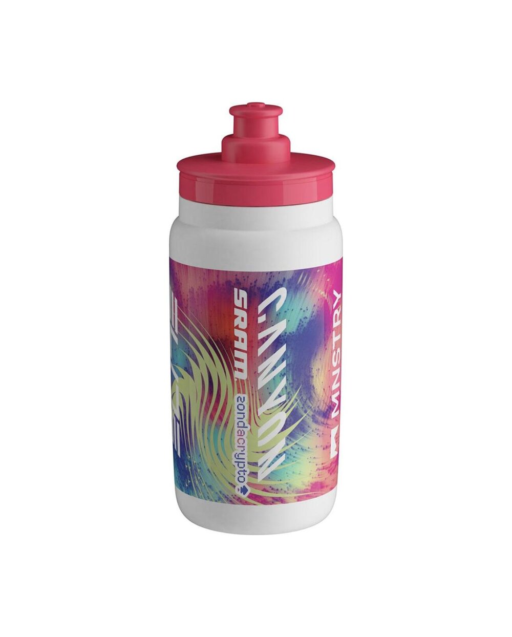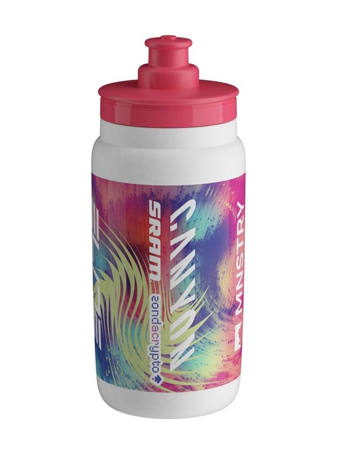 Elite Fly Teams 2025 to butelka rowerowa o pojemności 550 ml, zaprojektowana tak, aby była lekka i ergonomiczna. Ma średnicę 74 mm, dzięki czemu pasuje do standardowych uchwytów na butelki i ma wysokość około 184,5 mm. Butelka waży zaledwie 51 gramów i przeznaczona jest do płynów o maksymalnej temperaturze 40°C. Wykonany jest z połączenia PP i plastomeru, pokrywa wykonana jest z PP, a zawór wykonany jest z TPE i PP. W konstrukcji butelki zastosowano zmienną grubość materiału – środek jest cieńszy, końcówki wzmocnione, co zmniejsza wagę o około 30% w porównaniu do zwykłych butelek. Butelka ma duży otwór ułatwiający napełnianie i czyszczenie, a zakrętka typu push-pull zapewnia łatwe picie i dobry przepływ płynu. Materiał nie zawiera BPA, jest neutralny smakowo i nadaje się do recyklingu. Ogólnie rzecz biorąc, butelka jest odpowiednia zarówno dla rowerzystów zawodowych, jak i amatorów, którzy szukają lekkiej, praktycznej i bezpiecznej butelki na napoje podczas jazdy.Szczegóły