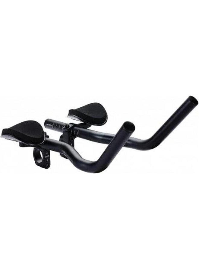 Dwuczęściowa aluminiowa kierownica do jazdy na czas i triathlonu.Łatwo regulowany mechanizm zaciskowy.Kompatybilny z kierownicami o średnicy 26 i 31,8 mm.Miękkie podłokietniki.Regulowana długość przedłużenia i dwie pozycje podłokietników.Waga 504 gramy.InstrukcjeSzczegóły