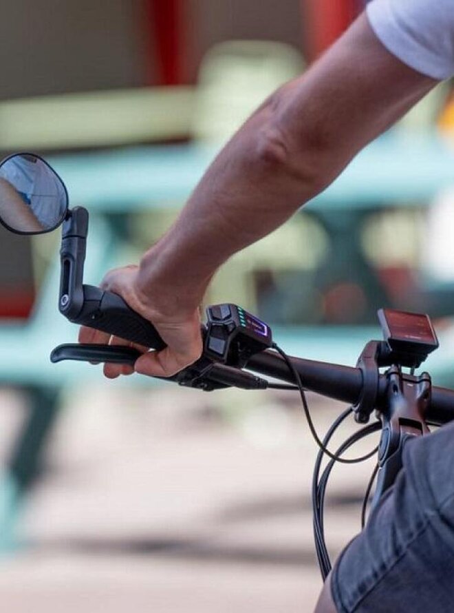 Wypukłe/zaokrąglone i antyrefleksyjne niebieskie lusterko wsteczne o szerokim polu widzenia Optymalny rozmiar lusterka 73 x 67 mm dla dobrej widoczności Uniwersalna konstrukcja dla kierownicy lewej i prawej ręki Łatwy system montażu na kierownicy z ØSzczegóły