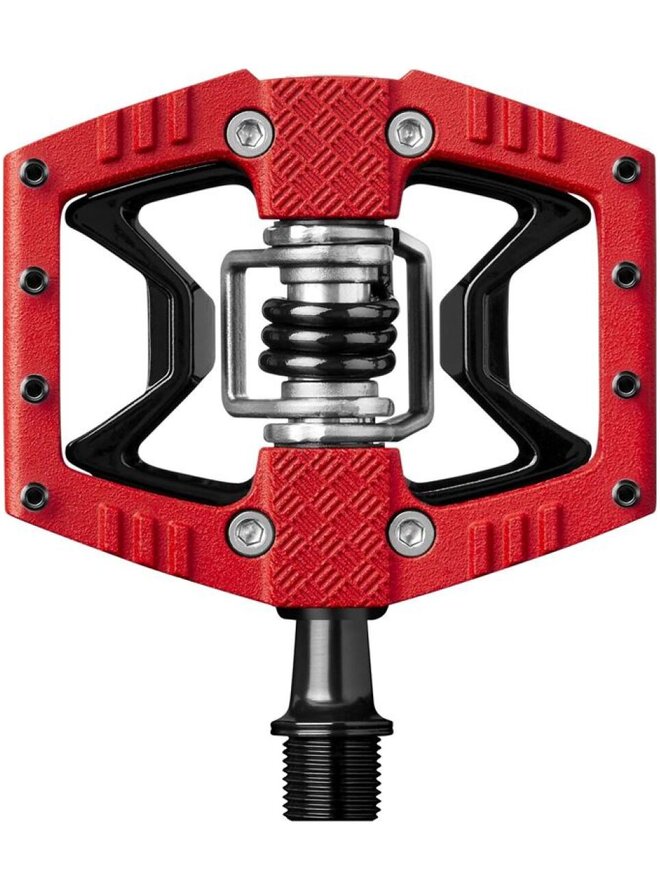 Gama Double Shot jest przeznaczona dla tych, którzy chcą wypróbować pedały lub tych, którzy chcą zachować obie opcje. Double Shot oferuje płaską platformę po jednej stronie i blokadę po drugiej stronie systemu pedałów. 8 regulowanych pinów. W zestawie znajdują się standardowe zatrzaski z kątem zatrzasku 15° lub 20° i prześwitem bocznym 6°. Waga: 403 g Platforma: Aluminium A380 Skrzydła: stal nierdzewna Sprężyna: stal nierdzewna serii 300 oś: stal cr-mo Łożysko wewnętrzne: tuleje ślizgowe Igus LL Łożysko zewnętrzne: łożyska przemysłowe Enduro q-factor 57mmSzczegóły