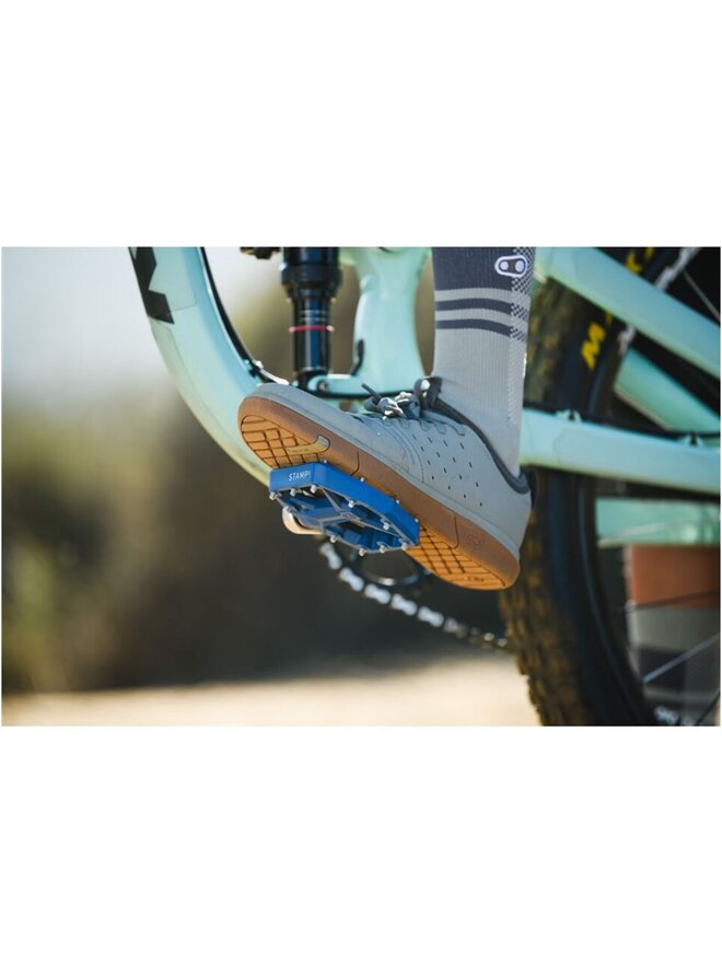 Nadeszła kolejna generacja najpopularniejszego pedału platformowego w Kalifornii! Nowe pedały Stamp 1 opierają się na dziedzictwie całej rodziny pedałów Stamp i mają wklęsłą platformę zapewniającą większą pewność na szlaku, sprawdzone komponenty wewnętrzne z pedału Stamp 7 zapewniające dużą trwałość i trwałość oraz nową jednoczęściową konstrukcję sworznia zapewniającą maksymalną przyczepność i łatwą wymianę pinów! Nowa wersja pedałów Stamp 1 została stworzona z bezkompromisowym zaangażowaniem w jakość i może pochwalić się solidną nylonową obudową oraz sprawdzonymi elementami wewnętrznymi z wielokrotnie nagradzanych pedałów Stamp 7. Zastosowanie: szlak/enduro/freeride/DH/rowery elektryczne/sport/dojazdy do pracy Smukły, wklęsły profil - wysokość korpusu pedału od 13,5 mm do 15,5 mm Waga 321g Korpus platformy: 100 x 100 mm (buty 35 do 43,5), wysokość 13,5-15,5 mm Platforma: kompozyt nylonowy Oś: kuta stal Cr-Mo Łożysko wewnętrzne: tuleja ślizgowa Igus LL Łożysko zewnętrzne: tuleja ślizgowa Igus LL Nowe jednoczęściowe wymienne sworznie, 10 sztuk na pedał (wysokość sworznia wewnętrznego 23 mm, wysokość sworznia zewnętrznego 25 mm) Stempel Small zalecany dla rozmiarów butów: 3-10 (US M) // 37-43,5 (UE) Stempel Large zalecany dla rozmiarów butów: 10-15 (US M) // 43,5-49 (UE)Szczegóły