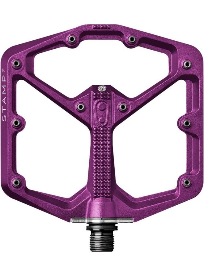 Górna platforma pedału w dwóch rozmiarach dla różnych rozmiarów butów. Minimalny profil 11-13 mm. WAGA 375 g PLATFORMA aluminium 6061-T6 (114 x 111 mm, dla rozmiaru buta 43-49) OSA stal Cr-Mo 435 ŁOŻYSKO WEWNĘTRZNE Tuleja ślizgowa Igus LL Łożysko zewnętrzne Tuleja ślizgowa Igus LL PINY 10 z każdej strony, wymienne TESTY W MEDIACH: http://www.bikeandride.cz/2016/11/pedaly-crankbrothers-stamp-large-prakticke-predstaveni/Szczegóły