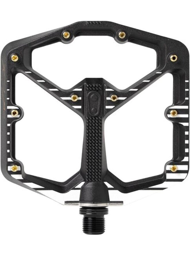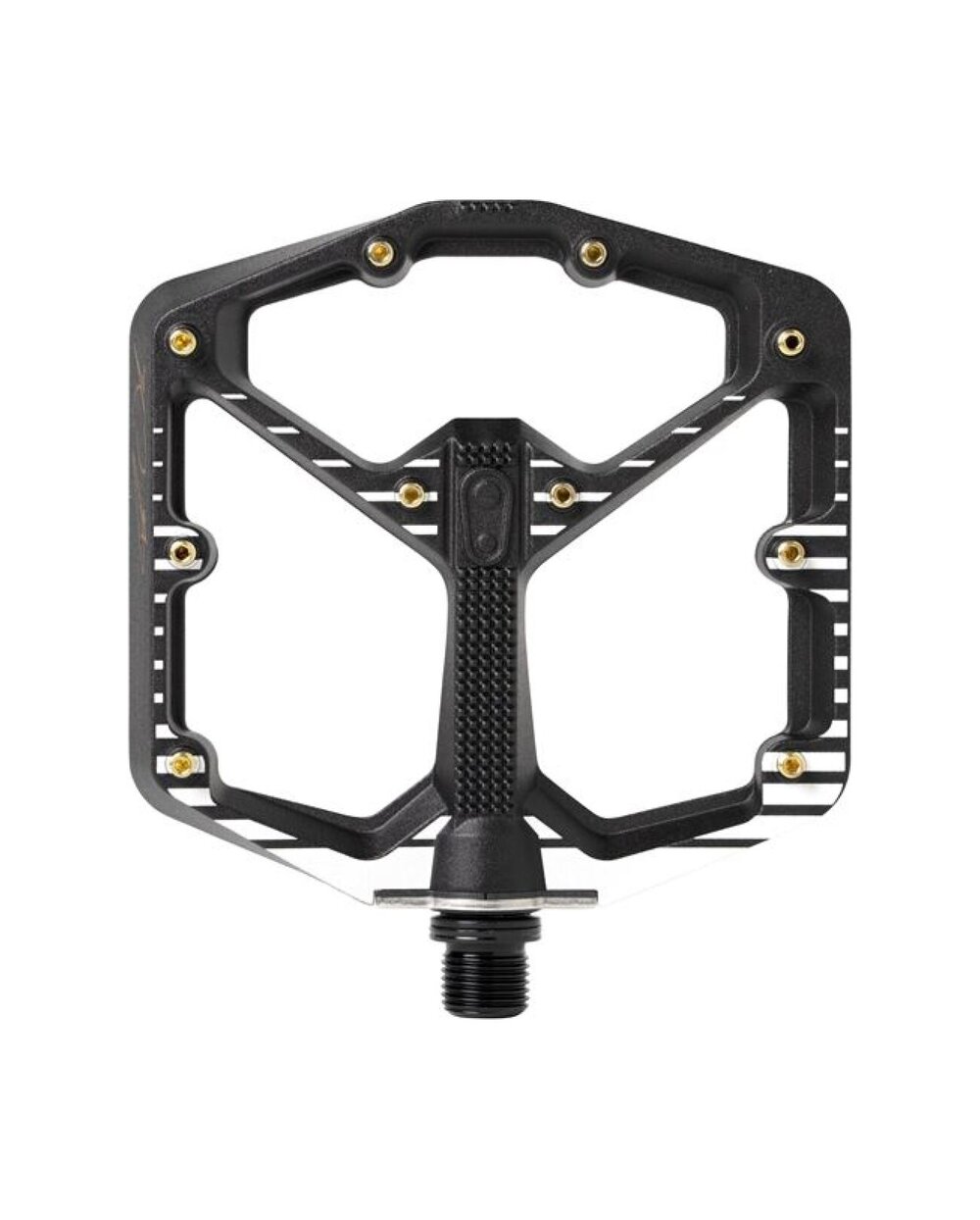 Górna platforma pedału w dwóch rozmiarach dla różnych rozmiarów butów. Minimalny profil 11-13 mm. WAGA 345 g PLATFORMA aluminium 6061-T6 (100 x 100 mm, dla rozmiarów butów 37-43) OSA stal Cr-Mo 435 ŁOŻYSKO WEWNĘTRZNE Tuleje ślizgowe Igus LL Łożysko zewnętrzne Tuleje ślizgowe Igus LL PINY 10 z każdej strony, wymienne TESTY W MEDIACH: http://www.bikeandride.cz/2016/11/pedaly-crankbrothers-stamp-large-prakticke-predstaveni/Szczegóły