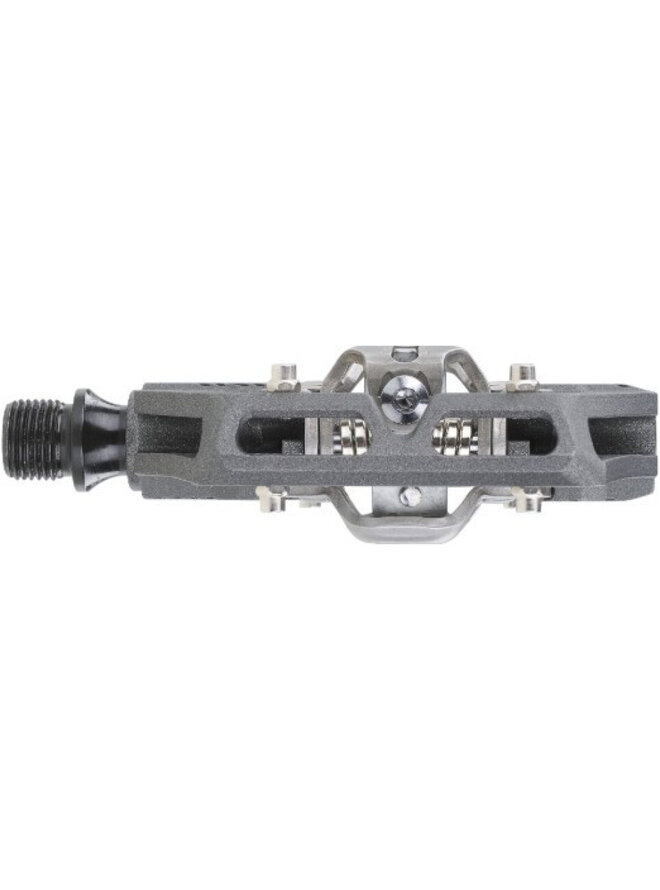 CNC uprawiane, ceramicznie pokryty pedał magnezu (Ceramag) utrzymuje niską masę zaledwie 419 gramów na parę - około 210 gramów na pedał. Wykorzystuje ultra-nieuzasadnione kute i CNC uprawiane chrom-molibden osi stalowy. W pełni sprawdzony system potrójnych łożysk składa się z samozadowolenia LSL, łożyska igieł i łożyska przemysłowego. Czterokrotnie pieczęci utrzymują suche części wewnętrzne w dowolnym warunkach. System klikania podwójnie jest kompatybilny z klasycznymi buty piłkarskimi SPD. System retencji ma regulowane napięcie sprężyny do drobnego połączenia i uwalniania oraz oferuje 5 stopni swobodnego ruchu. Duża platforma wokół systemu kliknięcia zapewnia stałą obsługę zoptymalizowanego sterowania i transferu mocy. Pedał jest testowany i certyfikowany zgodnie z EFBE EPAC EPAC Gravity Tri-Test® (kategoria 5).
