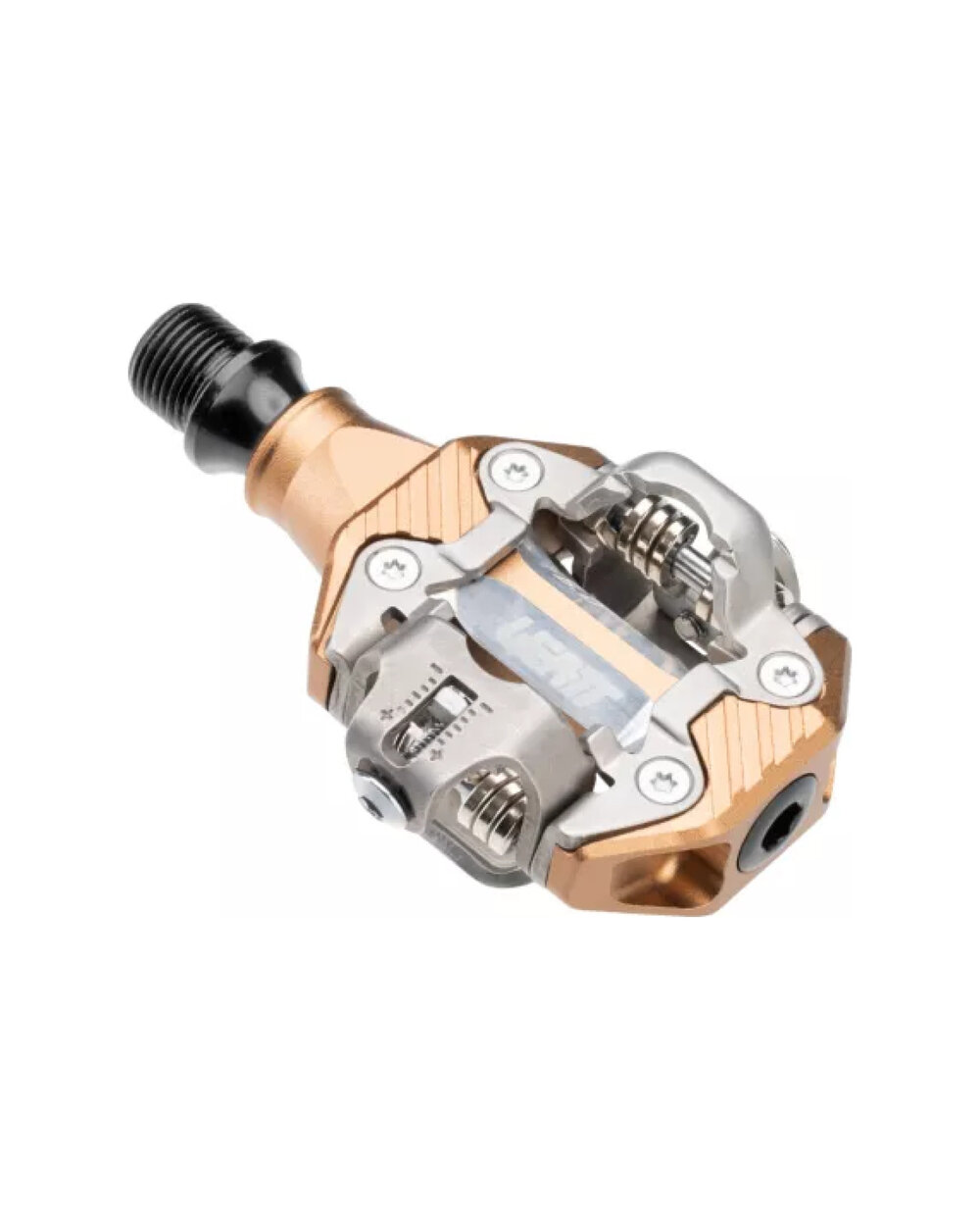 Pedał bez klipsów wykonany metodą CNC z aluminium 6061-T6. Wykorzystuje wyjątkowo wytrzymałą oś ze stali chromowo-molibdenowej, kutej i obrabianej CNC. W pełni sprawny system potrójnych łożysk składa się z samoświecącej obudowy LSL, łożyska igiełkowego i przemysłowego łożyska wałeczkowego. Czterokrotne uszczelnienia utrzymują części wewnętrzne w stanie suchym w każdych warunkach. Dwustronny system klipsów jest kompatybilny z klasycznymi butami piłkarskimi SPD. System mocowania ma regulowane napięcie sprężyny w celu dokładnego dostrojenia i zwolnienia, a jednocześnie zapewnia 5 stopni swobodnego ruchu.