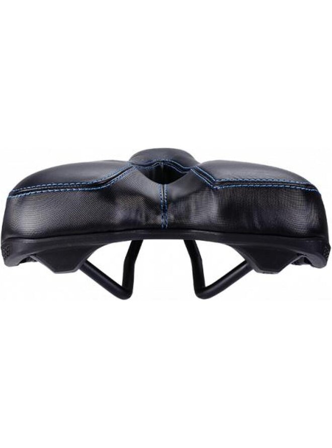 Ergonomiczne siodło turystyczne zaprojektowane do aktywnej pozycji kierowcy. Charakterystyczny kanał centralny z otworem w siodle zapewnia optymalny rozkład ciśnienia. Rozmiar: 185 x 265 mm (szerokość x długość), dla szerokości kości siedzenia> 135 mm. Dostępne również w rozmiarze 170 x 265 mm (szerokość x długość), dla szerokości kości kulszowej <135 mm (BSD-113). Siodło unisex. Waga: 470 g. Połączenie CRMO z skalą regulacyjną. Szkielet polipropylenowy ze zintegrowanymi zderzakami dla dodatkowej ochrony. Piana z potrójną gęstością: EVA z wysoką gęstością + PU z niższą gęstością + górną warstwą z pianą drobnej pamięci. Powierzchnia wykonana z prawdziwej skóry, trwałych syntetycznych paneli bocznych. Kolor: czarna skóra.Szczegóły