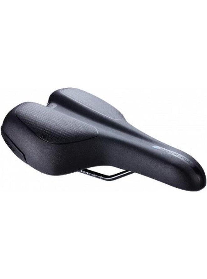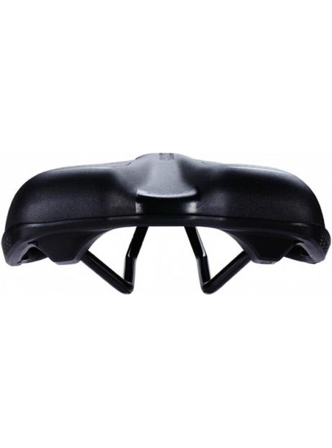 Ergonomiczne siodło turystyczne zaprojektowane do aktywnej pozycji kierowcy. Charakterystyczny kanał centralny zapewnia optymalny rozkład ciśnienia. Rozmiar: 170 x 265 mm (szerokość x długość), dla szerokości kości siedzenia <135 mm. Dostępne również w rozmiarze 185 x 265 mm (szerokość x długość), dla szerokości kości siedzenia> 135 mm (BSD-12). Siodło unisex. Waga: 440 g. Stalowe poślizgi ze skalą regulacyjną. Szkielet polipropylenowy ze zintegrowanymi zderzakami dla dodatkowej ochrony. Piana z potrójną gęstością: EVA z wysoką gęstością + PU z niższą gęstością + górną warstwą z pianą drobnej pamięci. Trwałość syntetyczna powierzchnia. Wodoodporny. Kolor: czarny.Szczegóły