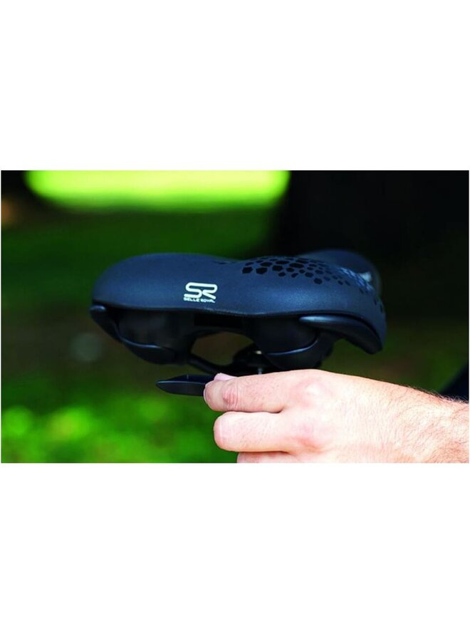 Siodełko, które dopasowuje się do Twojego kształtu — ciesz się natychmiastowym komfortem po dopasowaniu siodełka Freeway Fit. Amortyzacja Slow Fit Foam dopasowuje się do kształtu ciała i gwarantuje równomierny rozkład nacisku, dzięki czemu jest idealnym towarzyszem krótszych przejażdżek po mieście. Siodełka umiarkowane przeznaczone są dla osób, które na rowerze mają swobodną pozycję siedzącą (kąt oparcia ok. 60°), dzięki czemu mogą wygodnie siedzieć i jednocześnie bezproblemowo pedałować. Pozycja jazdy jest decydującym czynnikiem przy wyborze optymalnego siodełka. W zależności od stylu jazdy sposób, w jaki kości siedzące dotykają siodełka, znacznie się różni, co z kolei wpływa na poziom komfortu. Siodełka Selle Royal są ergonomicznie zaprojektowane tak, aby pasowały do kości siedzącej o dowolnej szerokości i spełniały anatomiczne potrzeby zarówno mężczyzn, jak i kobiet, gwarantując zmniejszenie nacisku w najbardziej wrażliwych obszarach. Wybierz odpowiednią pozycję do jazdy: 45° (sportowa), 60° (umiarkowana) lub 90° (zrelaksowana), aby cieszyć się bezbolesną jazdą. Pianka Slow Fit: idealna na krótkie i zrelaksowane przejażdżki. Amortyzacja Slow Fit Foam to ekskluzywna technologia Selle Royal zaprojektowana tak, aby dopasowywać się do kształtu ciała. Pianka z pamięcią o powolnym działaniu zapewnia płynną jazdę. Royal Vacuum: Ciesz się jazdą z wodoodpornym siodełkiem. Ta opatentowana technologia Selle Royal pozwala nam wyprodukować siodło, które jest w 100% szczelne i wodoodporne, nawet podczas jazdy w ulewnym deszczu. Ochrona boczna: Powiedz NIE podartym krawędziom siodełka i oprzyj rower naprawdę gdziekolwiek, na czymkolwiek: zabezpieczenia po bokach siodełka zwiększają jego odporność na ścieranie i rozdarcia. Zintegrowany system klipsów: Zintegrowany klips z tyłu siodełka umożliwia przymocowanie sakwy lub innych akcesoriów. Szerokość: 186 mm Długość: 260 mm Waga: 524 g ICS: takSzczegóły
