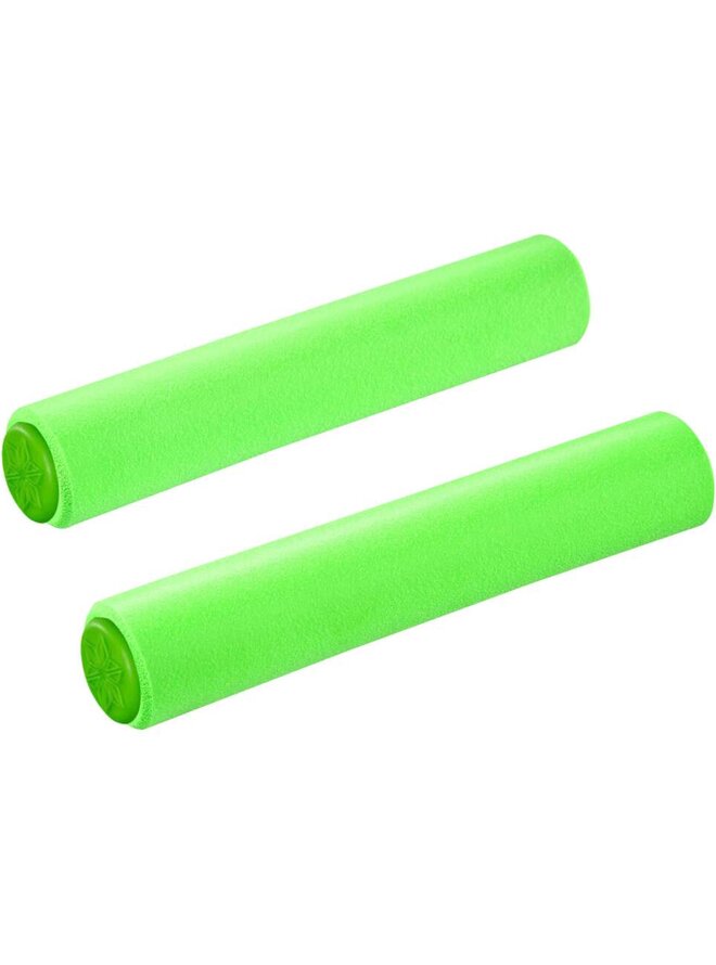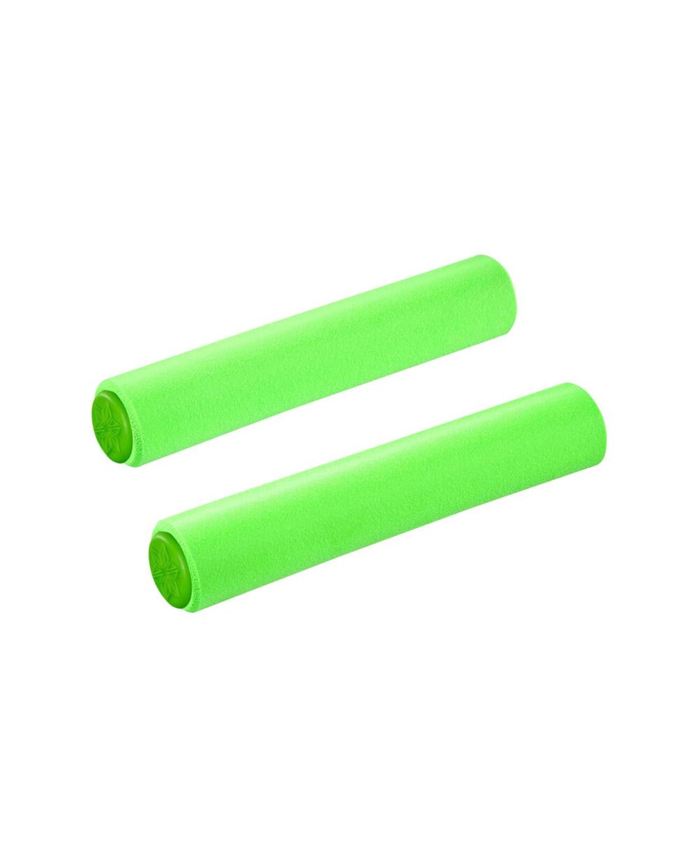 Silikonowe chwyty MTB doskonale pochłaniają wstrząsy, zmniejszając drętwienie dłoni i zmęczenie ramion. Chwyty nadają się do użytku w każdych warunkach pogodowych, są antypoślizgowe, nieprzywierające, odporne na promieniowanie UV, nie zmieniają koloru ani kształtu dzięki silikonowi, mają wysoką przyczepność. Idealnie pasują do kierownicy, nie obracają się i są bardzo łatwe w czyszczeniu. Ważą niewiarygodne 48 g łącznie z plastikowymi zaślepkami. Długość 130 mm, do kierownic o średnicy 34 mm.