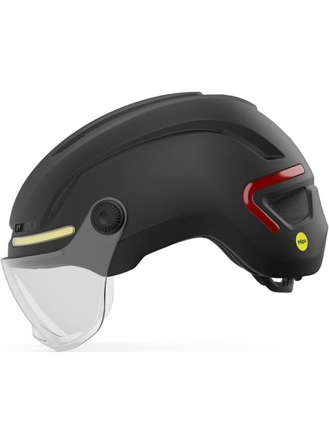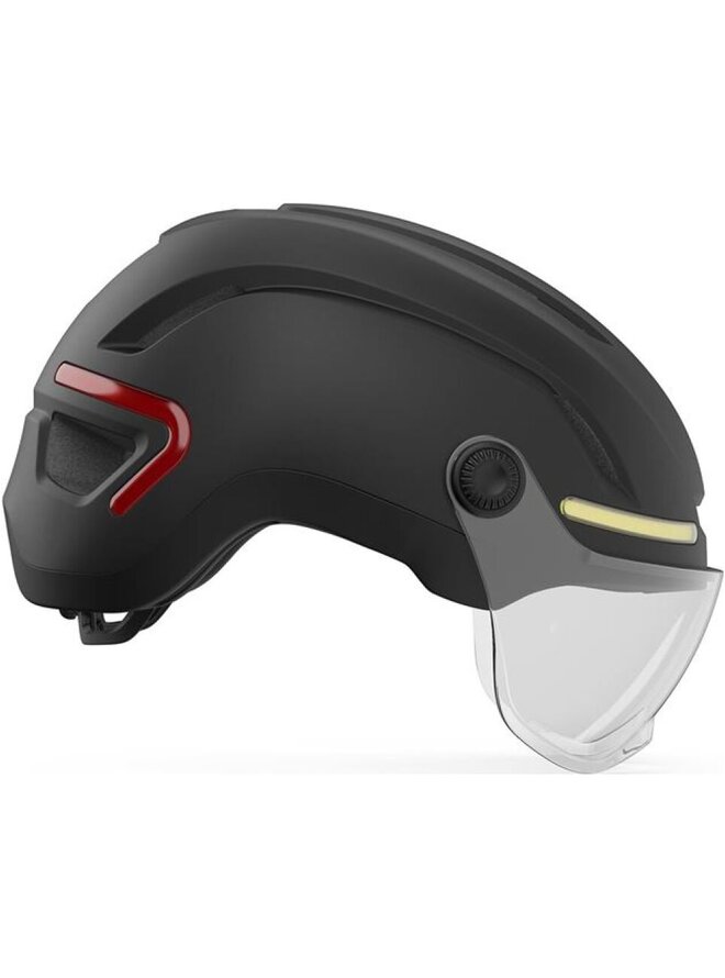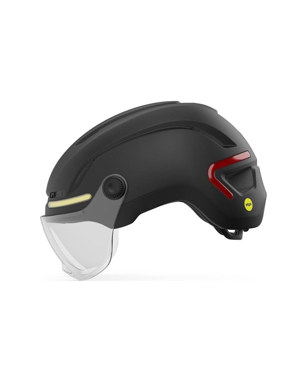 Chcesz jeździć na rowerze w mieście i chcesz być widziany. Ethos MIPS Shield to rewolucyjny hełm, który zapewni bezpieczeństwo w ruchu miejskim. Zintegrowane białe reflektory i czerwone tylne światła zamieniają się w pomarańczowe sygnały skrętu za pomocą pilota na kierownicy. Cały system ma wytrzymałość na ładunek około 10 godzin przy zmniejszonej mocy i 5H do maksymalnej mocy (45 lumenów z przodu, 30 lumenów z tyłu). Naładuje za pomocą portu USB-C. System zacisków Roc Loc City dba i komfort. Ponadto system MIPS zwiększa ochronę przed upadkiem. ROC LOC® City System Konstrukcja w ramach zintegrowanego systemu MIPS Wentylacja 12 otworów, wewnętrzne kanały powietrzne Właściwości Regulowana przezroczysta etykieta Ochrona oczu, możliwość użycia własnych okularów, elementów odblaskowych, zintegrowanych przednich i tylnych świateł, które zamieniają się w sygnały skrętu po aktywacji z zdalnego sterowania kierownicy, ładuj przez USB-C Super Fit ™ M (55-59 cm), L (59–63 cm)Szczegóły