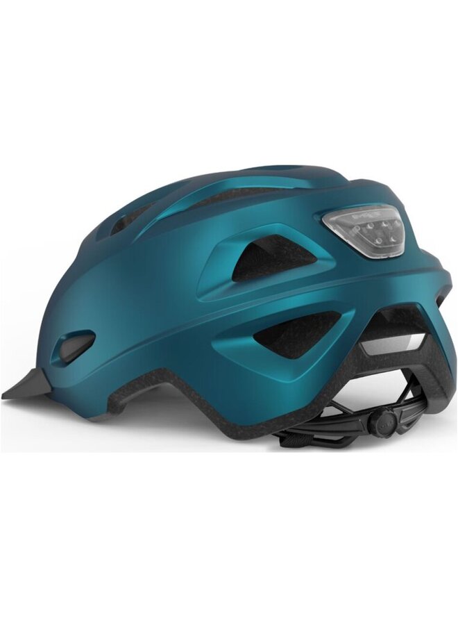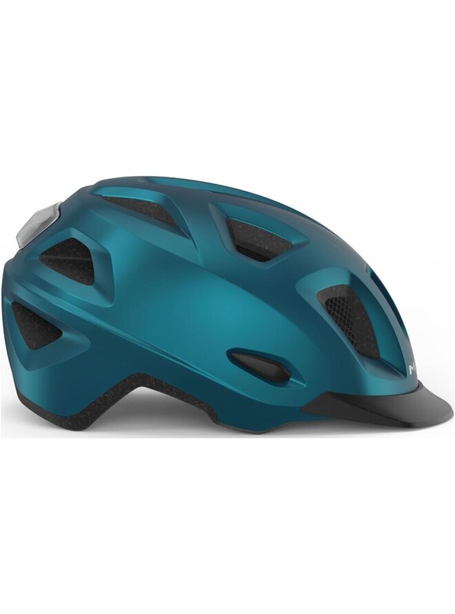 Kask miejski do roweru elektrycznego ze zintegrowanym tylnym światłem LED. MET Mobility to wyjątkowo bezpieczny i bogaty w funkcje kask do miejskiej dżungli. Wyjątkowy pod każdym względem. Nowoczesny design łączy się z funkcjonalnym wyglądem. Tylne światło LED oferuje 4 diody i jasność do 60 godzin. Zintegrowana siatka przeciw owadom chroni przed nieoczekiwanymi użądleniami lub ukąszeniami owadów. Wyściełane zapięcie pod brodą zwiększa komfort noszenia nawet podczas długich przejażdżek.