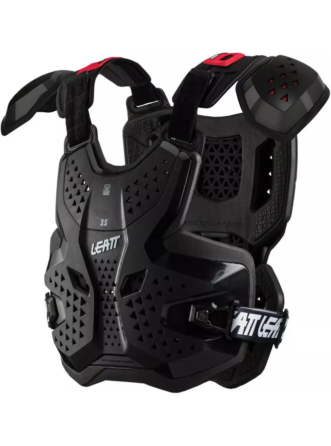 Ochraniacz klatki piersiowej 3.5 Pro jest tym samym, co bardzo popularny ochraniacz klatki piersiowej 3.5 z dodatkowymi regulowanymi ochraniaczami ramion. Cienki, lekki i posiada certyfikowaną ochronę klatki piersiowej i pleców w przypadku uderzenia.