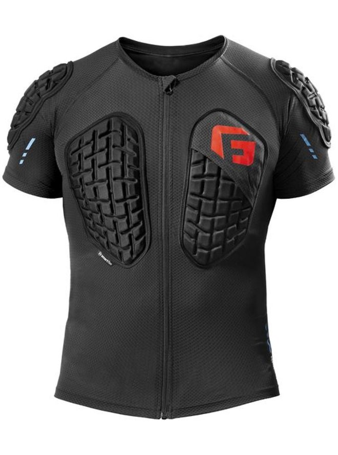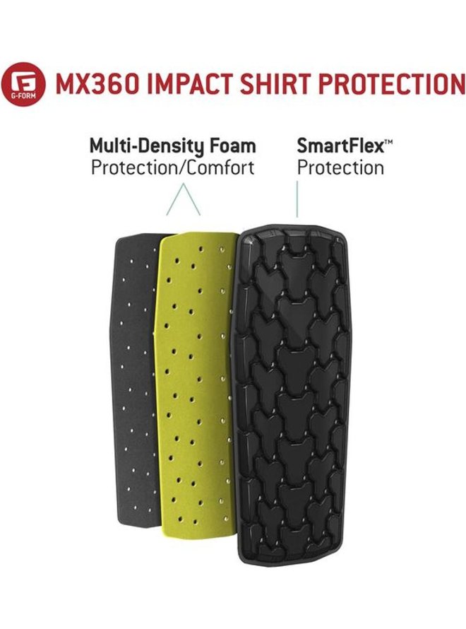 Lekka, zapinana na zamek koszulka G-Form z ochroną ramion i żeber oraz wyjmowanym ochraniaczem kręgosłupa. Jest wykonana z lekkiego materiału, który odprowadza nadmiar ciepła, wentyluje i zapewnia komfort nawet podczas całodziennej jazdy w parku rowerowym, ale jest wystarczająco wytrzymały, aby przetrwać upadek. Ochraniacz ramion i żeber jest wykonany z nowego materiału SmartFlex Stretch, który jeszcze lepiej dopasowuje się do ciała i wszelkiego rodzaju ruchów, a jednocześnie może chronić go w razie upadku równie dobrze, jak standardowa pianka SmartFlex. Pianka ta jest następnie wykorzystywana w wentylowanym i wyjmowanym ochraniaczu kręgosłupa wraz z miękką piankową warstwą bazową dla wyjątkowego komfortu noszenia i bezbłędnej ochrony kręgosłupa. Charakterystyczna funkcja pianki SmartFlex pozostaje tutaj taka sama: jest elastyczna podczas jazdy, idealnie dopasowuje się do ciała, nie ogranicza ruchów, a dopiero gdy rowerzysta upada, w pełni sztywnieje, tworząc solidny ochraniacz, rozkładając nacisk uderzenia na większy obszar i chroniąc rowerzystę przed obrażeniami. Idealny do: Downhill, Enduro, Moto Zgodność z normą CE EN 1621-2.Szczegóły