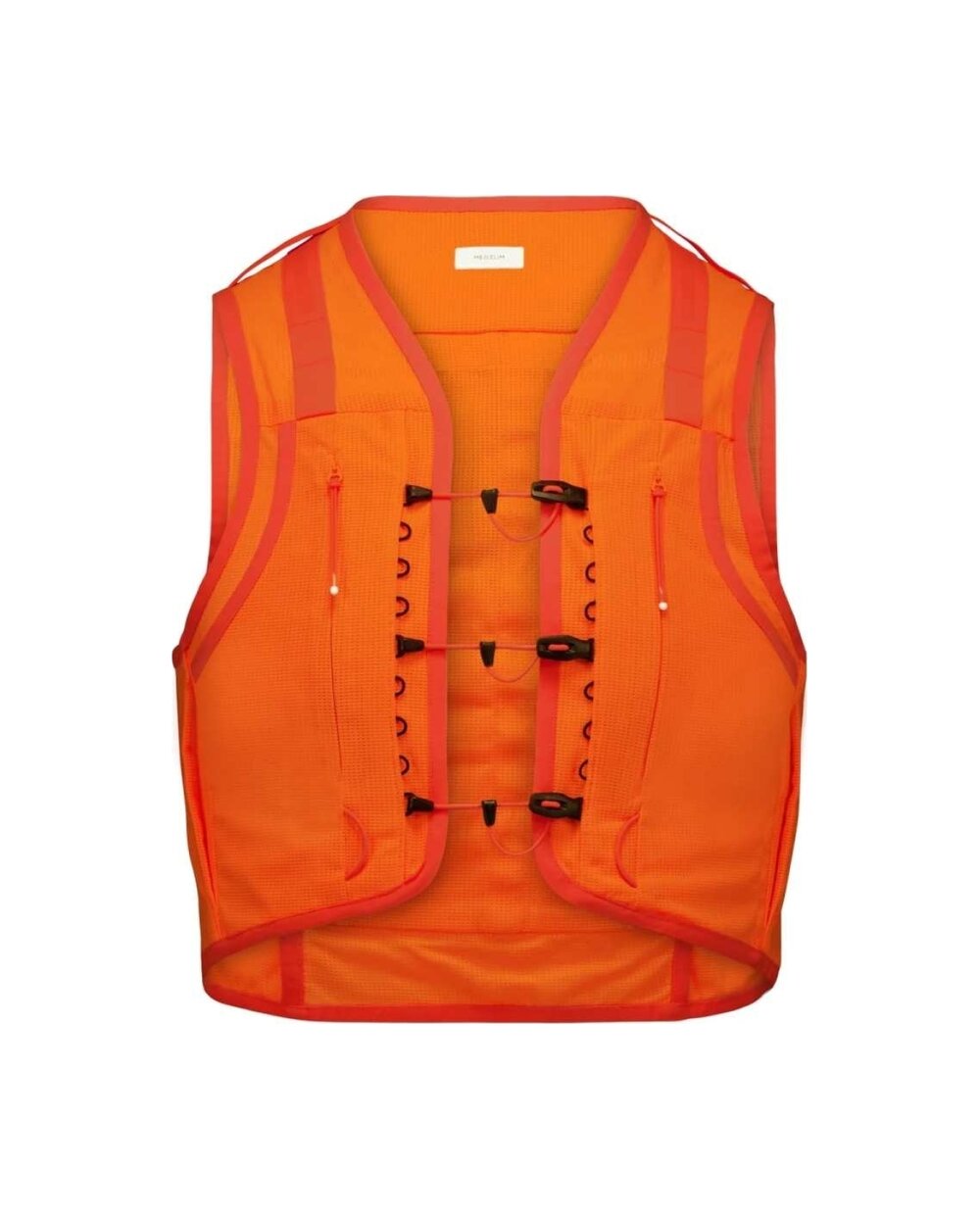 Kamizelka Ultra jest idealna na długie wyścigi w każdych warunkach. Nie tylko ułatwia trzymanie płynów pod ręką, ale także pozwala innym Cię zauważyć, pomagając Ci zachować bezpieczeństwo podczas całodniowych wyścigów lub przygód.- Kamizelka Ultra ma na celu zapewnienie każdemu kolarzowi długodystansowemu pełnego nawodnienia i pełnej widoczności. Pozwala łatwo przechowywać napoje i inne drobne przedmioty pod ręką oraz zapewnia dodatkowe miejsce do przechowywania pracy obok kieszeni koszulki. Kamizelka jest wykonana w kolorze fluorescencyjnej pomarańczy o wysokiej widoczności i ma odblaskowe detale, dzięki czemu inni mogą łatwiej Cię zobaczyć podczas jazdy, niezależnie od warunków i poziomu oświetlenia, co czyni ją idealnym wyborem dla rowerzystów i zawodników długodystansowych. Ukształtowana tak, aby uzupełniać Twój sprzęt rowerowy, kamizelka ma krótszą długość, dzięki czemu łatwo mieści się w kieszeniach koszulki. Dzięki schowkom z przodu i z tyłu bez problemu pomieści aż 3 litry płynów, dzięki czemu możesz jeździć dłużej. Oprócz kieszeni zapewniających dodatkowe nawodnienie, kamizelka posiada małe, łatwo dostępne kieszenie, idealne do przechowywania przekąski lub lekkiej kurtki. Lekka kamizelka została zoptymalizowana pod kątem absolutnego komfortu nawet podczas noszenia sprzętu i ma stałe punkty regulacji oraz elastyczne sznurki zamiast zamka błyskawicznego, dzięki czemu siły rozkładają się bardziej równomiernie na klatkę piersiową.