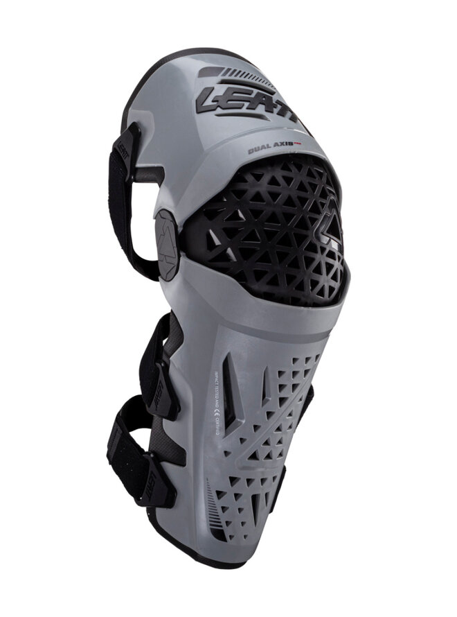 Aby zapewnić pełną ochronę kolan i kości piszczelowej, szukaj wyłącznie ochraniacza kolan i goleni Dual Axis Pro. Anatomicznie poprawny system rotacji z przekładnią czerpiącą inspirację z ortezy kolana, podąża za naturalnym ruchem kolana. Twarda skorupa opracowana przez Leatt, przetestowana i certyfikowana jako ochrona przed uderzeniami, a miękka wyściółka wewnętrzna zapewnia duży komfort. Gumowana wewnętrzna tapicerka zawiasów zapewnia doskonałą przyczepność roweru podczas jazdy. Cienki, niski profil i smukła płytka piszczelowa umożliwiają doskonałe mocowanie buta. Otwory wentylacyjne w krytycznych obszarach zapewniają maksymalny przepływ powietrza. Dzięki doskonałemu komfortowi, bezpieczeństwu i wydajnościom Dual Axis Pro jest doskonałym dodatkiem do ochraniaczy kolan Leatt.