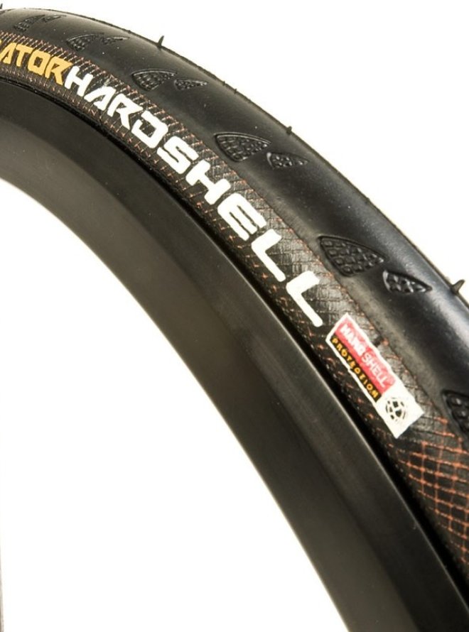 Niezwykle wytrzymała opona szosowa Continental Gator Hardshell z drutową stopką i mocną ochroną przed przebiciem Hardshell. Zbudowana, aby wytrzymać przebicia i wszystkie rygory zniszczonych dróg oraz przetrwać tysiące mil.
