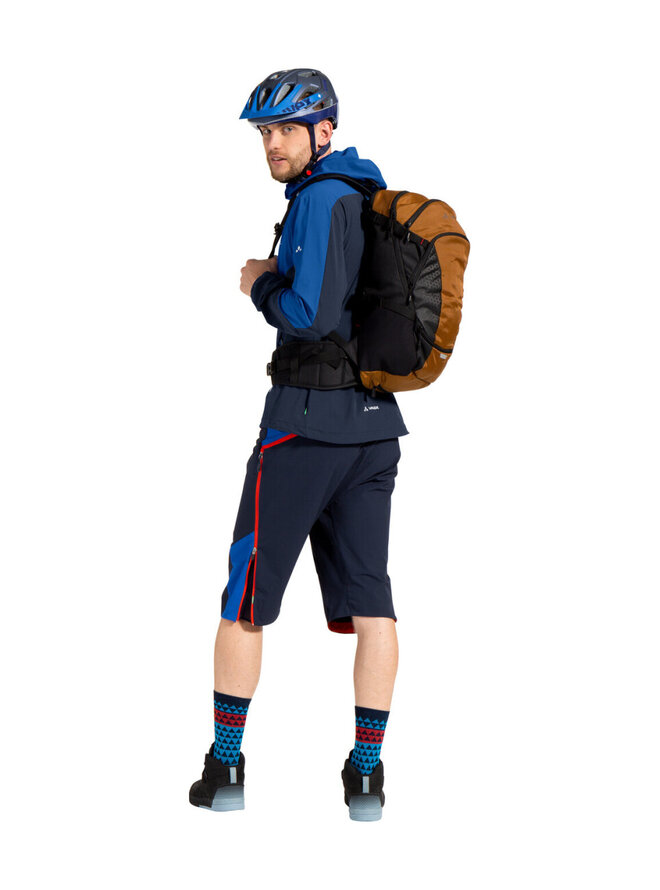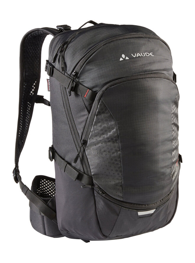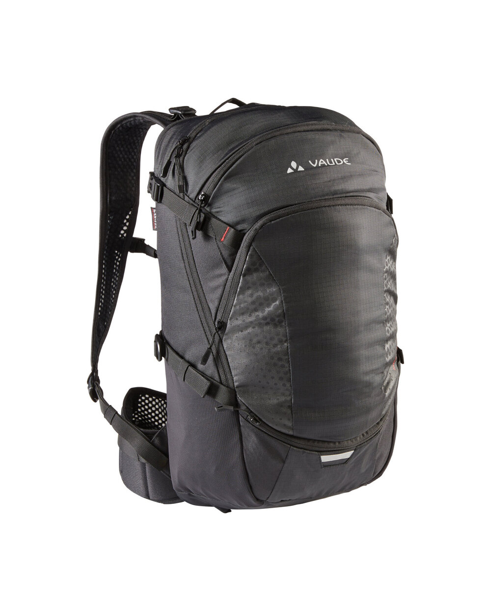 - Regulowany pas piersiowy z uchwytem na wąż do picia, uchwytem na klucze, uchwytem na lampkę bezpieczeństwa, uchwytem na okulary, bocznymi paskami kompresyjnymi i elementami odblaskowymi