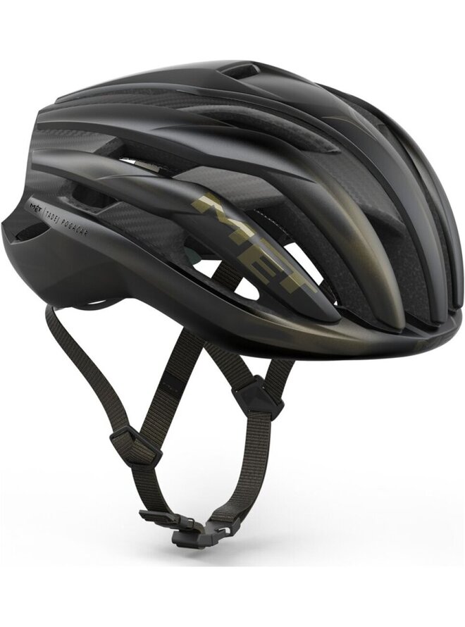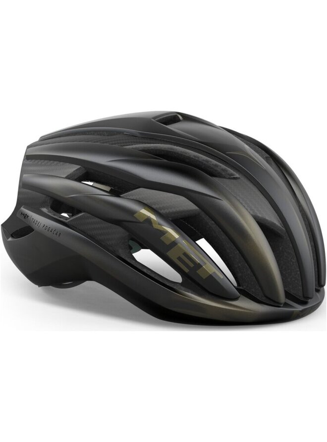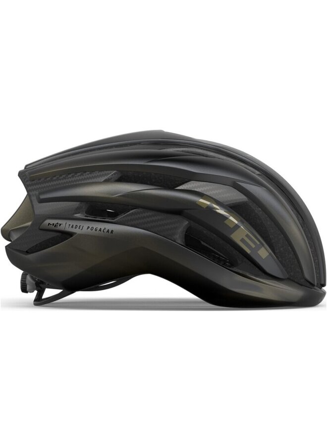MET Trenta 3K Carbon Blačk Edition na nowo definiuje nasz najbardziej zaawansowany kask do jazdy szosowej dzięki nowemu, ekskluzywnemu projektowi stworzonemu dla Tadeja Pogačara. Ta edycja Blačk celebruje złotą erę współczesnego kolarstwa i jego słynną gwiazdę, Tadeja Pogačara – naturalny talent i esencję prawdziwego mistrza. Jego aerodynamiczny i innowacyjny profil jest teraz bardziej wyraźny i wyrafinowany dzięki unikalnemu połączeniu kolorów czerni – symbolizującej elegancję i autorytet – oraz złota, reprezentującego sezon pełen zwycięstw.