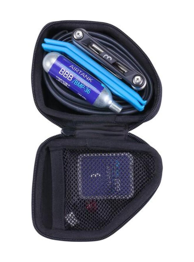 Kieszeń na górnej rurze ramy wykonana z wodoodpornego materiału ułatwiającego czyszczenie.Wnętrze wzmocnione pianką EVA do przenoszenia narzędzi i drobnych przedmiotów niezbędnych podczas jazdy.Wewnętrzna kieszeń z siatki na drobne przedmioty i pętelka na klucze.Łatwy montaż za pomocą beznarzędziowych śrub lub pasków ściągających.W połączeniu z BBC-120 Adaptrail, montaż jest możliwy niemal wszędzie.Wymiary: 93x70x120mmPojemność: 0,46LDodatkowe akcesoria pokazane na zdjęciach nie są dołączone do torby (należy je dokupić).Szczegóły