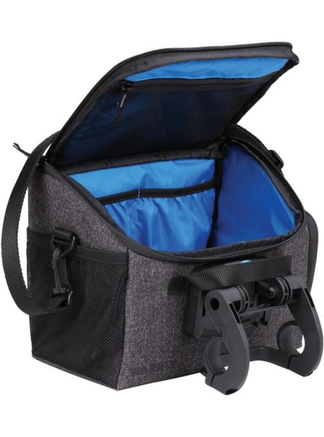 Duży schowek z wewnętrzną wyściółką z pianki ochronnej Pętla na przednią lampkę LED System mocowania na kierownicy, odpowiedni również do rowerów elektrycznych z systemem łatwego wyjmowania kieszeni Regulowany i odpinany pasek na ramię Kompatybilny z pokrowcem RainCover (BSB-97) jako ochrona przed deszczem i brudem Materiał kieszeni: nylon System zamykania: zamek błyskawiczny Rodzaj zapięcia. Łatwy montaż/demontaż Pojemność w cm3: 550 Wymiary wys. x szer. x gł.: 180 x 260 x 160 mm Kolor: szary melanżSzczegóły