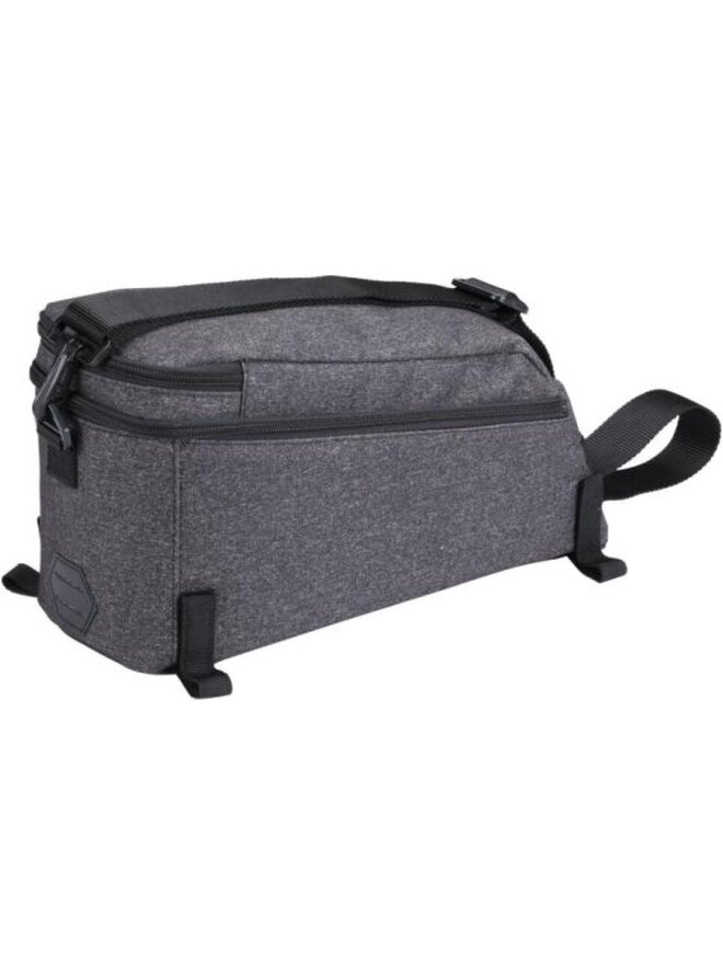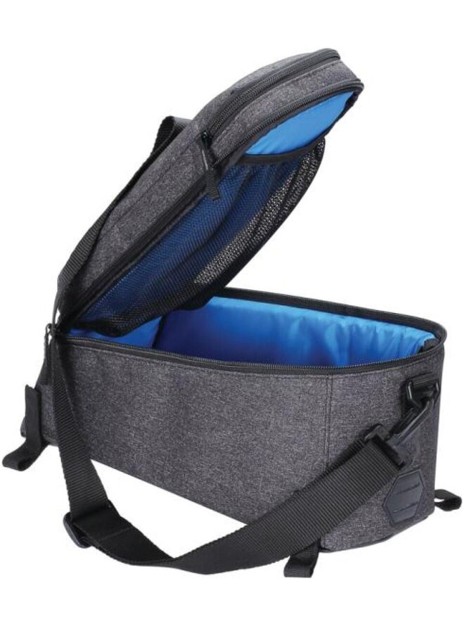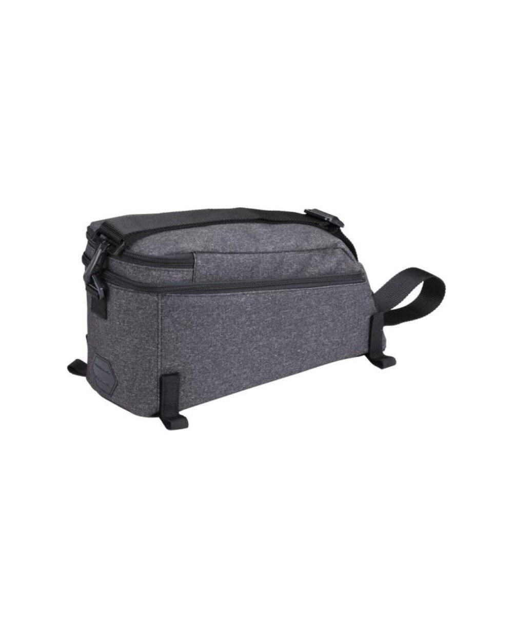 Duży schowek z wewnętrzną wyściółką z pianki ochronnej Tylna pętla na tylną lampkę LED 4 paski na rzepy mocujące torbę do bagażnika, zapobiegające przesuwaniu się kieszeni do przodu lub na boki Regulowany i odpinany pasek na ramię Kompatybilna z pokrowcem RainCover (BSB-97) jako ochrona przed deszczem i brudem Materiał kieszeni: nylon System zamykania: zamek błyskawiczny Typ zapięcia: rzep Łatwy montaż/demontaż Pojemność w cm3: 11500 Wymiary wys. x szer. x gł.: 160 x 160 x 360 mm Kolor: szary melanżSzczegóły