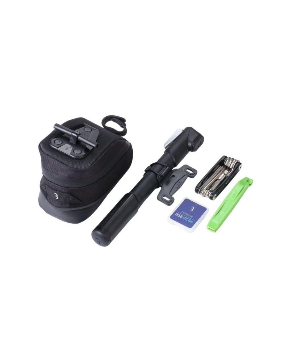 BSB-12M StorePack z systemem T-buckle w opakowaniu z pompką i narzędziami, zawiera:BTL-141S MaxiFold mini narzędzie z 12 funkcjamiBMP-54 WindVawe mini pompkaBTL-81 EasyLift dźwignie do montażu opon (2 szt.)BTL-80 LeakFix zestaw łatek samoprzylepnych do dętekSzczegóły