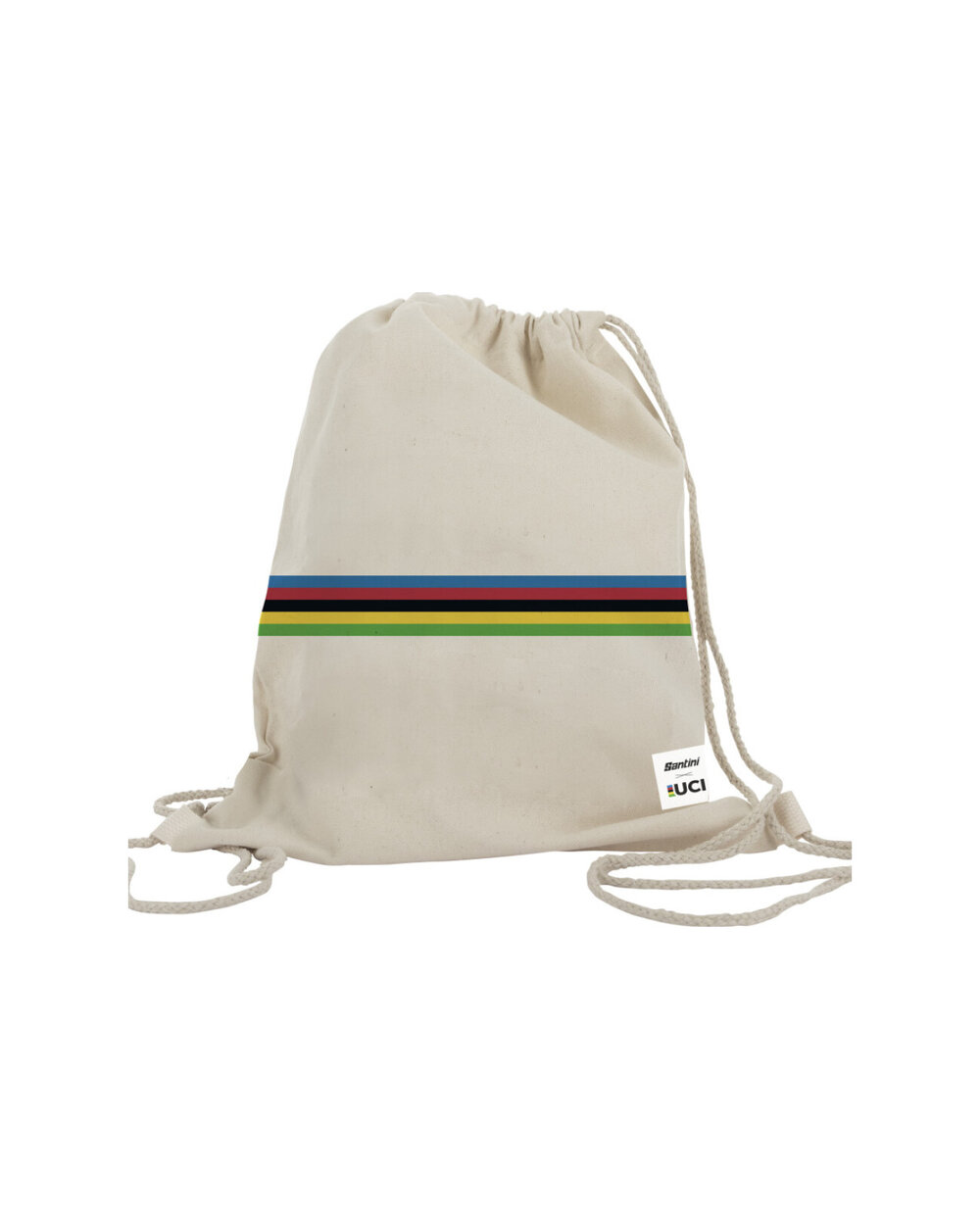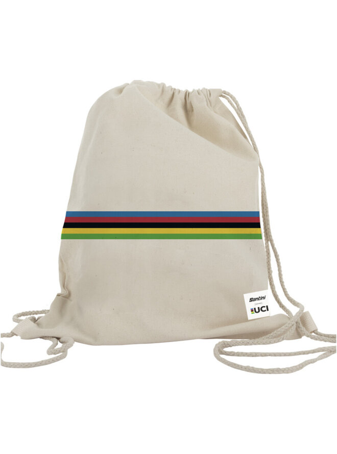 Plecak ze sznurkiem z wzorem inspirowanym tęczowymi paskami Mistrzostw Świata UCI. Wykonany z bawełny. Zapięcie na sznurek. Doskonały do przechowywania. Przeznaczony do noszenia na rowerze lub poza nim.Szczegóły
