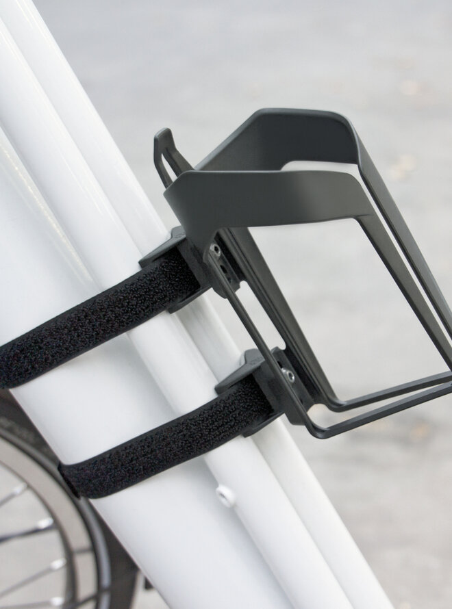 Uniwersalny uchwyt na koszyk na bidon z możliwością montażu w niemal dowolnym miejscu na rowerze.