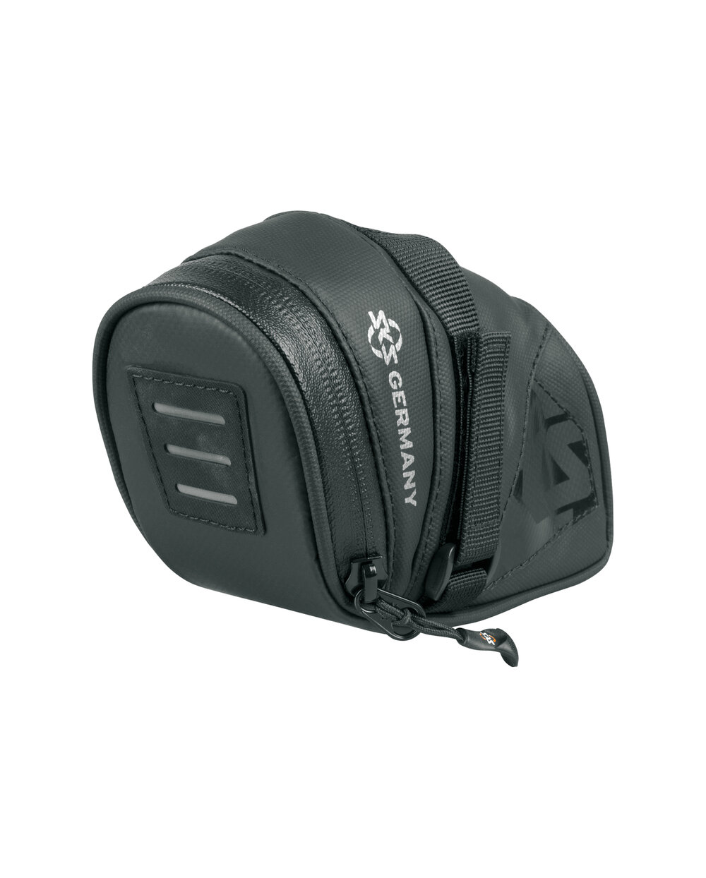 Ta wytrzymała sakwa jest wykonana z wodoodpornego gumowanego materiału i jest odpowiednia dla każdego rowerzysty górskiego, który nie boi się żadnego terenu ani pogody. Oferuje mnóstwo miejsca na narzędzia, zapasową dętkę i inne niezbędne rzeczy. Odblaskowe elementy zwiększają bezpieczeństwo. Stylowa torba posiada wodoodporny zamek błyskawiczny z ergonomicznym suwakiem oraz pomarańczową podszewkę dla lepszej widoczności wewnątrz.