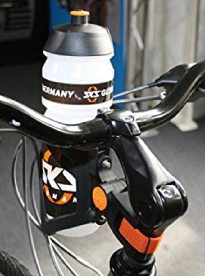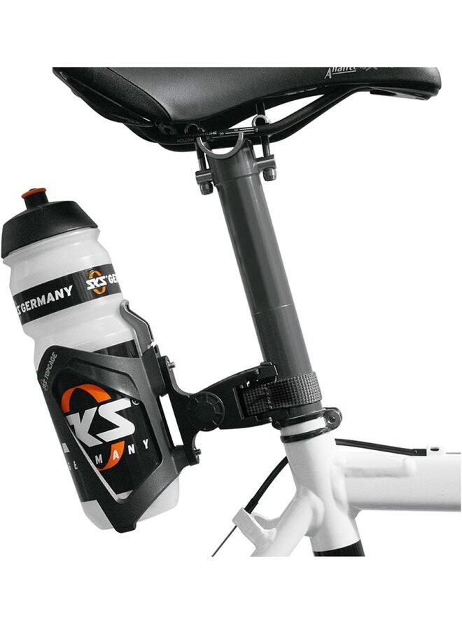 Adapter koszyka na bidonSKS, odpowiedni do wszystkich ram bez otworów na koszyk. Dzięki systemowi szybkiego zwalniania może być używany na wsporniku kierownicy, sztycy lub rurze ramy.