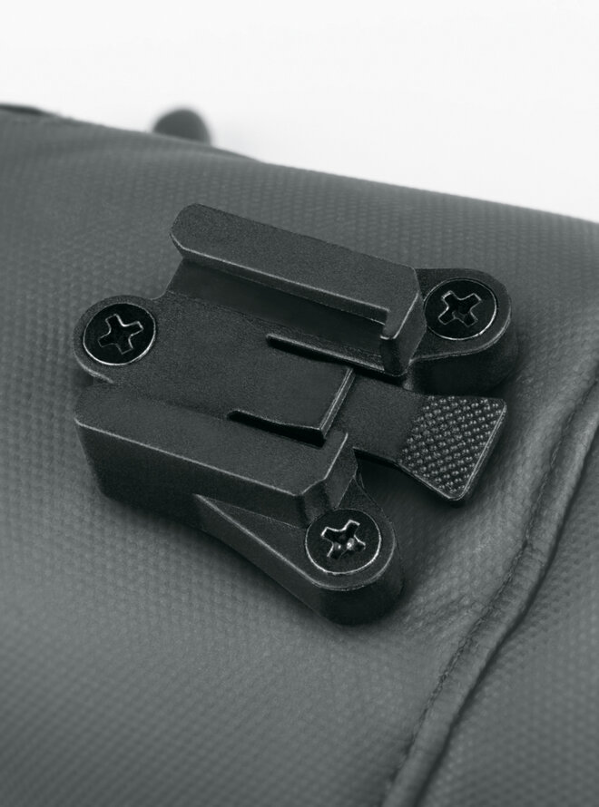 Mały, lekki adapter jest dyskretnie zintegrowany pod siodełkiem. Po przykręceniu dwoma śrubami torbę można łatwo założyć na adapter. Sztycę można zdjąć z siodełka, po prostu naciskając dźwignię.