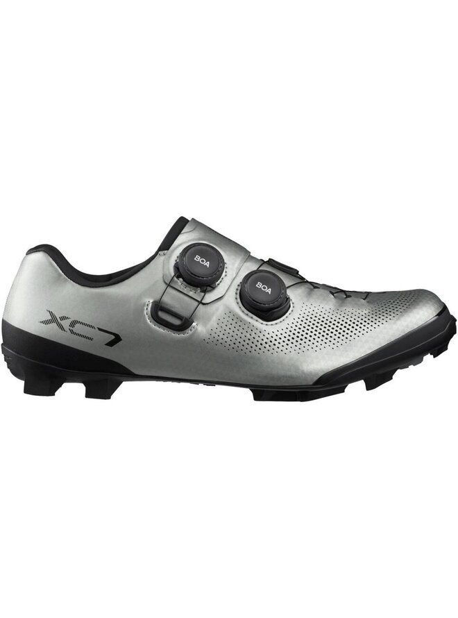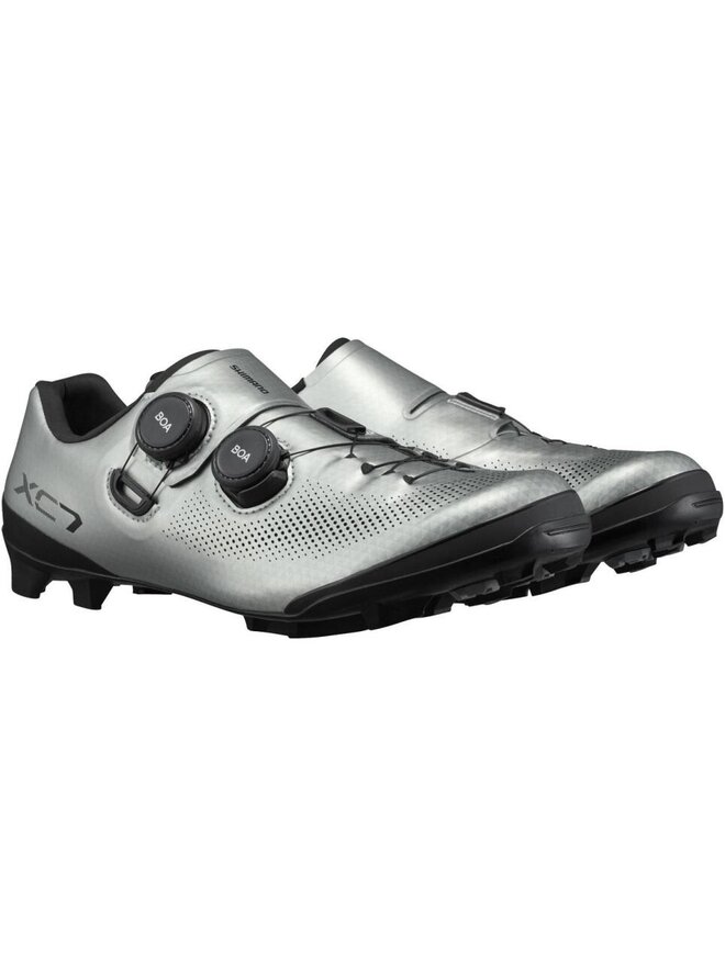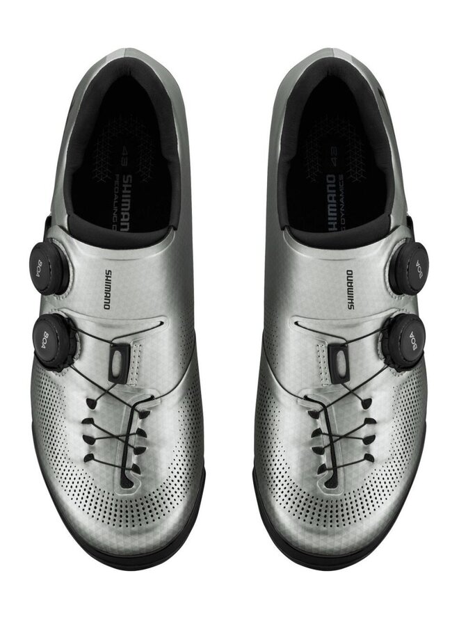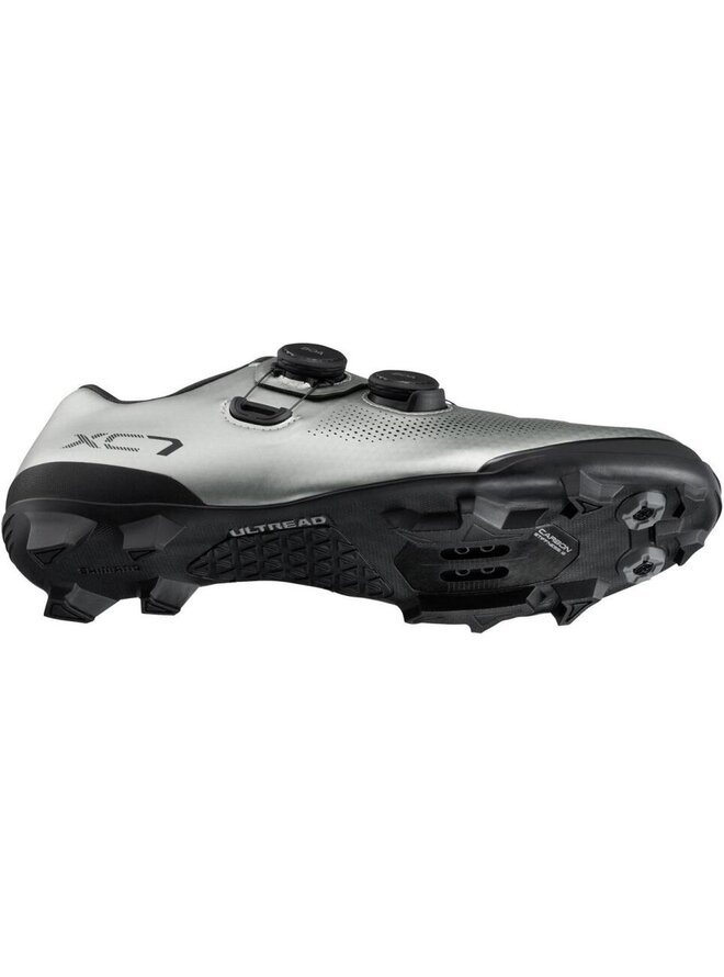 SH-XC703 to buty wyścigowe XC, które są niezwykle wygodne, lekkie i zaprojektowane z myślą o maksymalnej wydajności pedałowania w każdych warunkach. Eleganckie, płaskie sznurowanie krzyżowe zapewnia eleganckie dopasowanie przedniej części stopy. System BOA® z dwoma kompaktowymi kołami L6Z dla precyzyjnego dopasowania. Wyjątkowo lekka i sztywna podeszwa środkowa wzmocniona węglem dla optymalnego przenoszenia mocy. Lekka gumowa podeszwa SHIMANO ULTREAD XC zapewnia niezrównaną przyczepność podczas pokonywania wymagającego terenu. Kompatybilne ze stoperami SPD. Waga od 644g (nr 43). Zalecamy zmierzenie stopy i dobranie rozmiaru zgodnie z tabelą rozmiarów - zazwyczaj trzeba zamówić o jeden rozmiar większy niż normalnie nosisz. Trampki dostępne są także w wersji z szerszym kopytem – rozmiar oznaczono literą E.Szczegóły