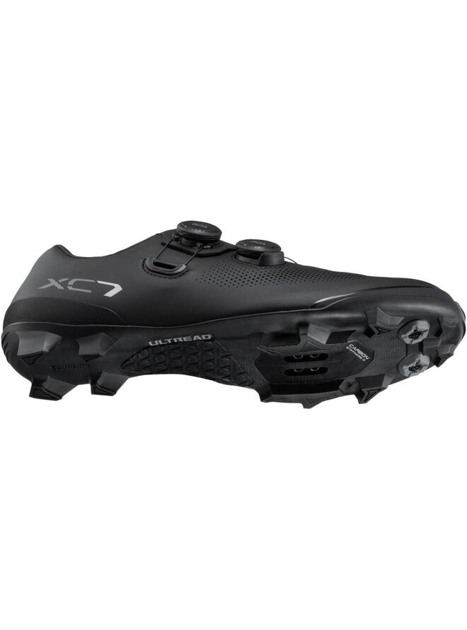 SH-XC703 to buty wyścigowe XC, które są niezwykle wygodne, lekkie i zaprojektowane z myślą o maksymalnej wydajności pedałowania w każdych warunkach. Eleganckie, płaskie sznurowanie krzyżowe zapewnia eleganckie dopasowanie przedniej części stopy. System BOA® z dwoma kompaktowymi kołami L6Z dla precyzyjnego dopasowania. Wyjątkowo lekka i sztywna podeszwa środkowa wzmocniona węglem dla optymalnego przenoszenia mocy. Lekka gumowa podeszwa SHIMANO ULTREAD XC zapewnia niezrównaną przyczepność podczas pokonywania wymagającego terenu. Kompatybilne ze stoperami SPD. Waga od 644g (nr 43). Zalecamy zmierzenie stopy i dobranie rozmiaru zgodnie z tabelą rozmiarów - zazwyczaj trzeba zamówić o jeden rozmiar większy niż normalnie nosisz. Trampki mają szersze kopyto (oznaczone jako rozmiar E).Szczegóły