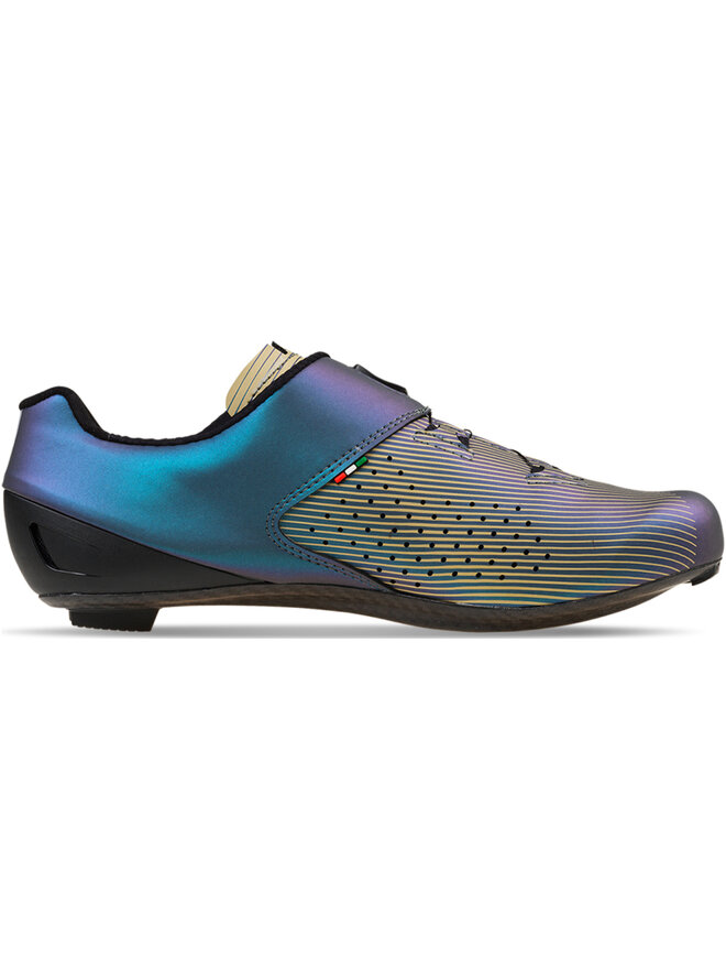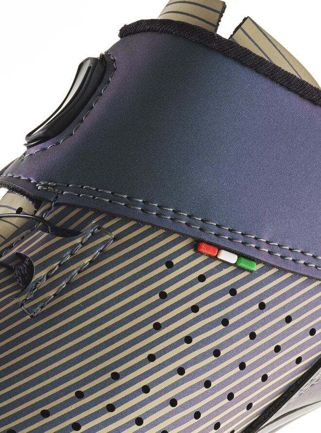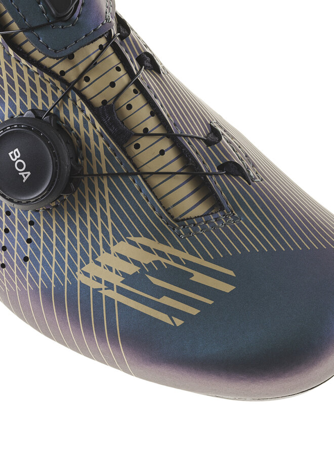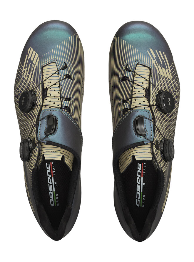 Sandał Carbon G.Fuga został zaprojektowany tak, aby zapewnić idealne ułożenie stopy wewnątrz sandała dzięki technologii TSS „Tarsal Support System”, która zapewnia płynne pedałowanie bez utraty energii. System podwójnego mocowania: dwa kółka BOA służą do dokręcania butów. Opatentowany system mocowania BOA L6 DIAL Z składa się z mikroregulującego koła nawojowego i linki ze stali nierdzewnej. Połączenie tych elementów pozwala na równomierne i szybkie mocowanie bez nieprzyjemnego nacisku. Dodatkowo brak rzepów pozwala na lepszą cyrkulację powietrza w przedniej części stopy. BOA udziela gwarancji na koło nawojowe i linki na cały okres użytkowania części trzecich. Dla lepszej wentylacji wewnątrz tenisówki, język zakrywający podbicie jest perforowany. Wewnątrz znajduje się miękka wyściółka dla większego komfortu. Oddychająca i specjalnie anatomicznie ukształtowana wkładka aktywnie stymuluje stopę przy każdym kroku. Dzięki mikrootworom antybakteryjna i hipoalergiczna wkładka zapewnia doskonałą oddychalność stopy. Wkładka jest wymienna. Obcas w nowej konstrukcji z zewnętrznymi otworami zapewniającymi wentylację i anatomicznie ukształtowanym wzmocnieniem z tworzywa sztucznego, aby zachować stały kształt. Zapobiega gromadzeniu się skarpety i chroni przed stanami zapalnymi ścięgna Achillesa.Szczegóły