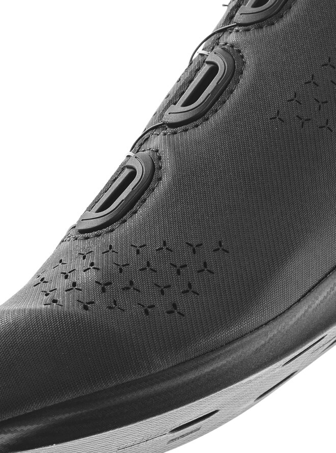 G.SPRINT+ to buty do jazdy na rowerze szosowym, które płynnie łączą w sobie kluczowe elementy z naszej profesjonalnej oferty, teraz zoptymalizowane dla każdego rowerzysty. Materiał z mikrofibry jest perforowany, aby zoptymalizować oddychalność i poprawić wentylację powietrza, utrzymując stopy w chłodzie i suchości przez całą jazdę. Wnętrze buta uzupełniono siateczką, która zapewnia stałe wsparcie stopy i zwiększa jej stabilność. System zapinania wyposażony w system mikroregulacji BOA L6 zapewnia równomierne i pewne mocowanie bez punktów ucisku. Technologia COMFORT FIT TONGUE zawiera zaawansowaną warstwę amortyzującą zapewniającą większy komfort i lepszą oddychalność. Zintegrowana antypoślizgowa część pięty zwiększa stabilność stopy i kontrolę, zapewniając lepsze wrażenia z jazdy. WKŁADKA EPS TRANSPIRANT INSOLE charakteryzuje się anatomicznym wsparciem, które zwiększa komfort i efektywność pedałowania. Specjalny kształt tenisówki na szeroką stopę z wyższym podbiciem.Szczegóły