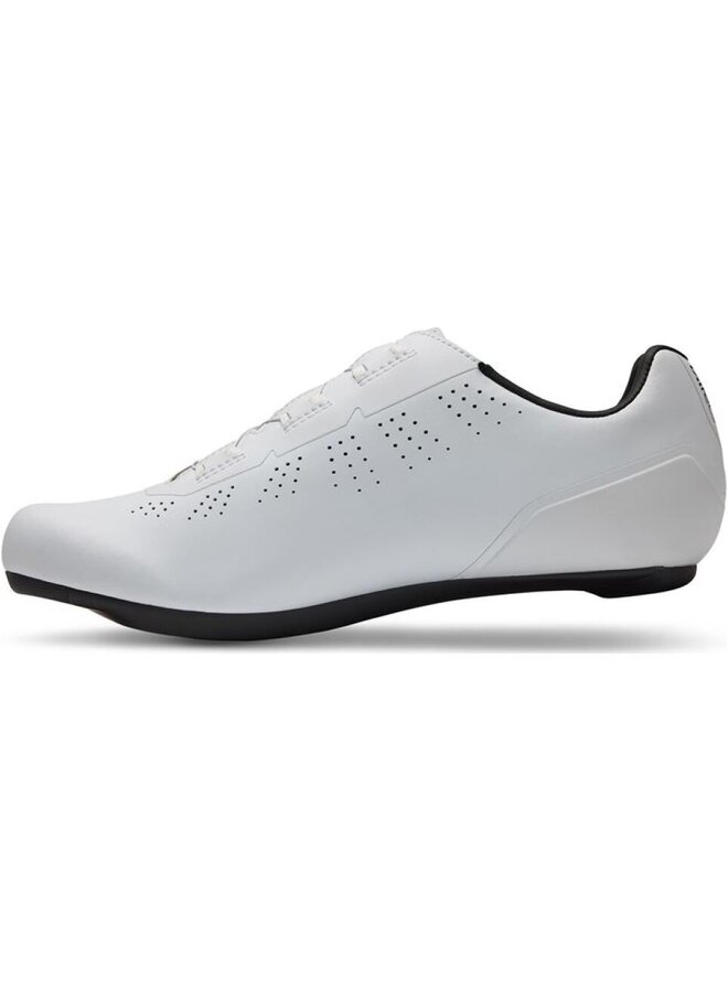 Cholewka jest lekka i oddychająca, a jej uzupełnieniem jest laserowa perforacja zapewniająca lepszą wentylację i odprowadzanie ciepła. Sztywna podeszwa z nylonu i kompozytu zapewnia efektywne przenoszenie mocy na pedały, natomiast wzmocniona pięta i palce zwiększają stabilność i trwałość w użytkowaniu. Bloki są kompatybilne z 3-śrubowymi obudowami SPD-SL i Look, co czyni je idealnymi do stosowania z pedałami szosowymi.