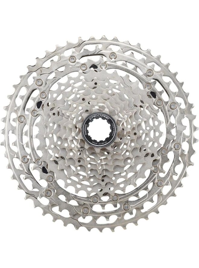 Dzięki ergonomicznie zaprojektowanym kołom zębatym kasety zmiana przełożeń z jednej zębatki na drugą jest płynna i natychmiastowa. Szeroki zakres przełożeń. Nadaje się do napędów 1x11. Typ: MTB, Masa całkowita: 1012 g, 11 biegów, Liczba zębów: 11-42, Liczba zębów na zębatkach: 11-13-15-17-21-24-28-33-39-45-51, Kompatybilny łańcuch: HG-EV 11-speed/HG-X11, Materiał: Al drift, 1-10 zębnik stalowy (wykończenie nikiel), 11 zębnik aluminiowy Nowy zestaw SHIMANO DEORE zapewnia jeszcze więcej przygód podczas aktywności na świeżym powietrzu dzięki szerszemu zakresowi opcji napędu do bardziej stromych, szybszych i przyjemniejszych przejażdżek. Zwiększ przyjemność z jazdy na rowerze górskim i opanuj płynną jazdę, lepszą stabilność łańcucha i wyraźną zmianę przełożeń na szlakach. Wspinaj się po stromych szlakach i zjeżdżaj ze wzgórz dzięki lepszej stabilności i przewidywalnemu prowadzeniu. Ruszaj w drogę z SHIMANO DEORE.Szczegóły