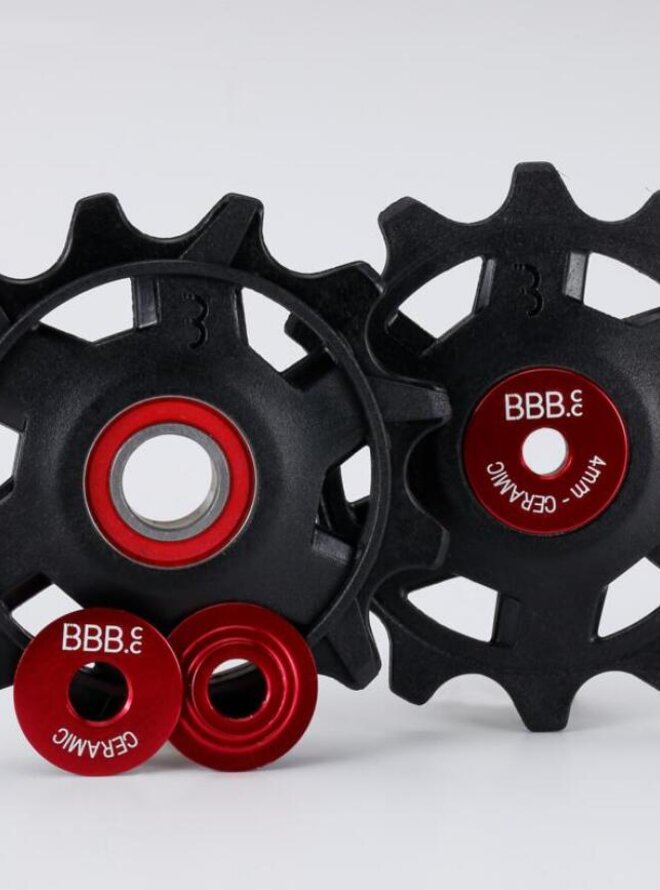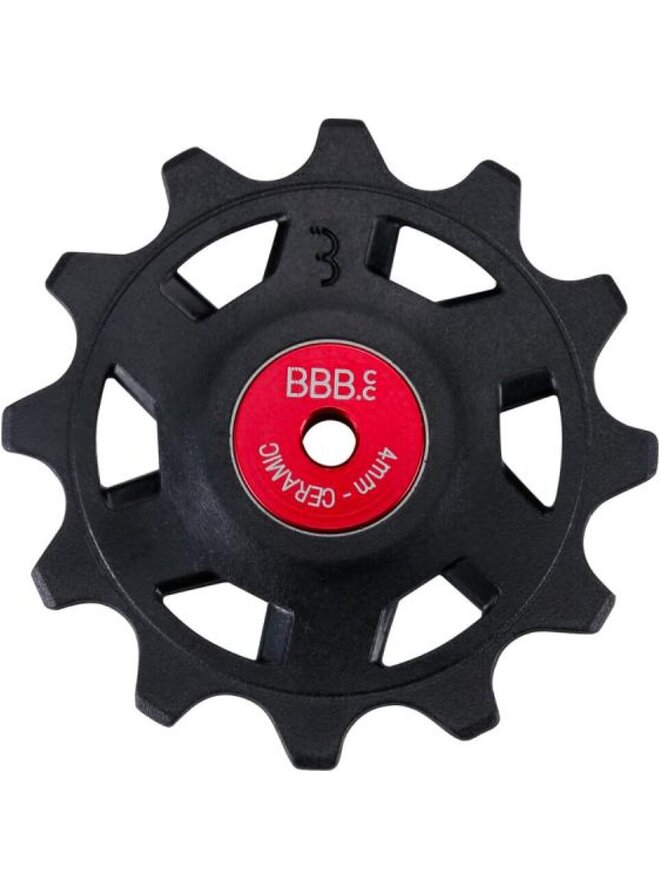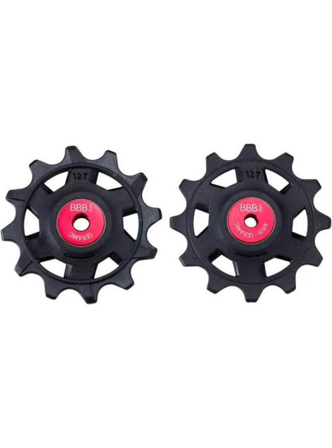 Krążki do przerzutek z 2x12 zębami i łożyskami ceramicznymi Wykonane z bardzo wytrzymałego szwajcarskiego materiału kompozytowego Grivory EMS z 40% zawartością włókna szklanego Uszczelnione łożyska z aluminiowymi osłonami zapewniają długą żywotność Smarowane specjalnym ceramicznym olejem łożyskowym dla jeszcze niższego tarcia Kompatybilny z 12-rzędowymi grupami osprzętu Sram Wąsko-szeroki profil zębówSzczegóły
