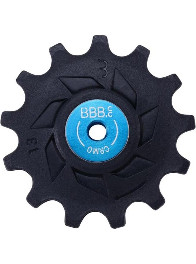 Kółka przerzutki wykonane ze szwajcarskiego materiału kompozytowego Grivory EMS z 40% zawartością włókna szklanego.Uszczelnione łożyska przemysłowe CrMo z aluminiowymi nasadkami.Kompatybilne z 12 zestawami przerzutek Shimano MTB.Opakowanie: 2x13 zębów.Waga: 30g.Szczegóły