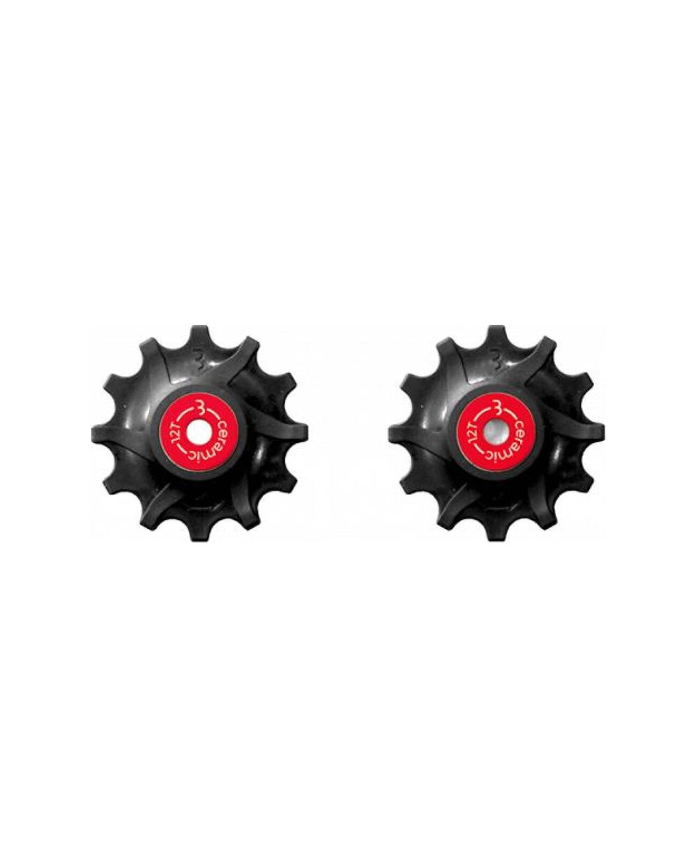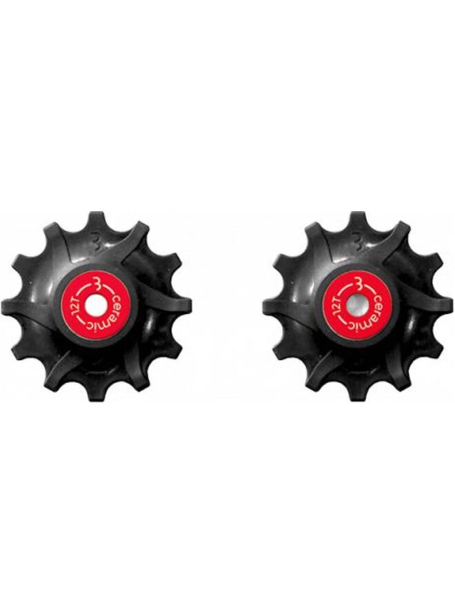 12 zębów, kompatybilne z SRAM 1x11.Ultra płynna praca i wysoka trwałość. Koła są wyposażone w specjalne łożyska ceramiczne. Specjalny lekki olej ceramiczny zapewnia wyjątkowo płynną pracę. Materiał kompozytowy wykonany przez EMS Swiss, 40% mieszanka włókna szklanego. Wąskie i szerokie profilowanie zębów zapewnia maksymalne trzymanie łańcucha.Szczegóły