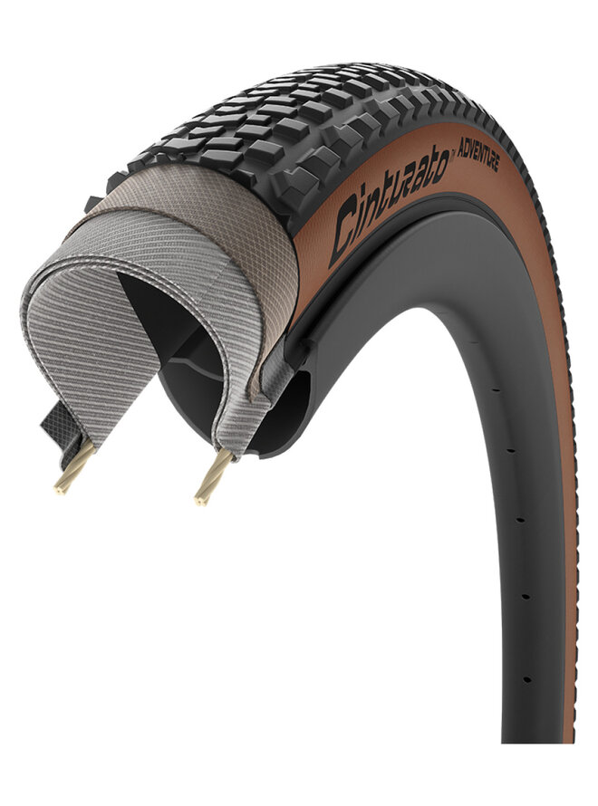 Opona Cinturato Adventure została zaprojektowana z myślą o przygodach z bikepackingiem; wzór jest niższy na środku i bardziej agresywny na barkach, a występy pochodzą z konstrukcji MTB, której celem jest wspieranie rowerzysty w terenie. Cinturato Adventure ma nową konstrukcję ProWall Gravel - osnowę 60tpi gotową do jazdy bezdętkowej z dodatkowym wzmocnieniem ścian bocznych, aby zapobiec uderzeniom bocznym, podczas gdy mieszanka gumy ProCompound Gravel zapewnia większy zasięg dzięki wielopolimerowej formule. Cinturato Adventure to opona, która zapewnia trakcję i przyczepność na różnych nawierzchniach.