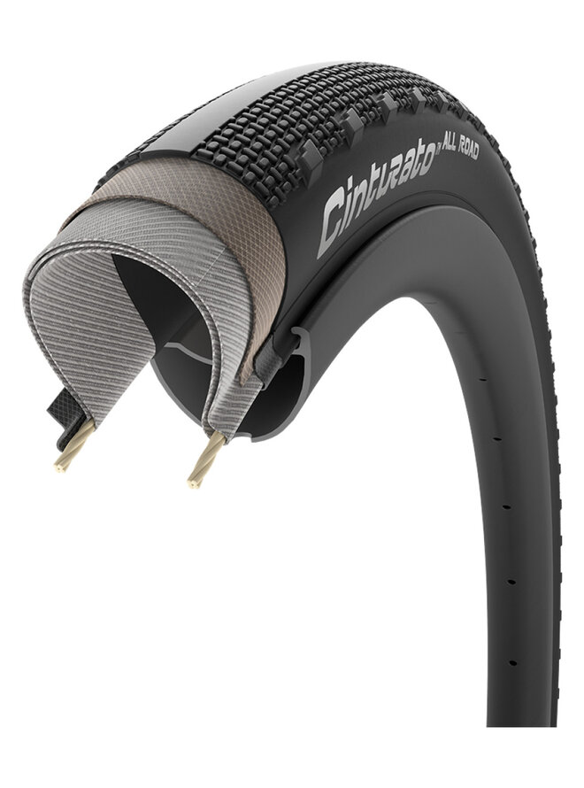 Pirelli Cinturato™ All Road, 45 - 622, 60 tpi, Pro (szuter), czarnaCinturato All Road to opona szutrowa przeznaczona do użytku na asfalcie, drogach utwardzonych lub lekkich nawierzchniach szutrowych. Wzór ma gładką linię środkową zapewniającą szybką i płynną jazdę po asfalcie i chodniku, stopniowo rosnące małe wypustki po bokach zapewniają pewną przyczepność na lekkim szutrze, a bardziej agresywne i mocne wypustki na barkach umożliwiają pokonywanie zakrętów na pochyłościach. Opona Cinturato All Road ma nową konstrukcję ProWall Gravel - osnowę 60tpi gotową do jazdy bezdętkowej z dodatkowym wzmocnieniem ścian bocznych, aby zapobiec rozcięciom bocznym, a mieszanka gumy ProCompound Gravel zapewnia większy zasięg dzięki wielopolimerowej formule. Cinturato All Road to opona, która zapewnia trakcję i przyczepność podczas szybkiej jazdy na różnych nawierzchniach, zarówno na szosie, jak i poza nią.