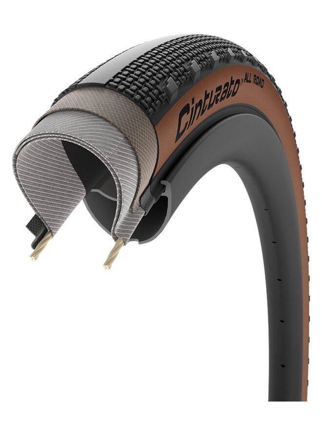 Pirelli Cinturato™ All Road Classic, 45 - 622, 60 tpi, Pro (szuter), Classic (tan-wall)Cinturato All Road to opona szutrowa przeznaczona do użytku na asfalcie, drogach utwardzonych lub lekkich nawierzchniach szutrowych. Wzór ma gładką linię środkową zapewniającą szybką i płynną jazdę po asfalcie i chodniku, stopniowo rosnące małe wypustki po bokach zapewniają pewną przyczepność na lekkim szutrze, podczas gdy bardziej agresywne i mocne wypustki na barkach umożliwiają pokonywanie zakrętów na pochyłościach. Opona Cinturato All Road ma nową konstrukcję ProWall Gravel - osnowę 60tpi gotową do jazdy bezdętkowej z dodatkowym wzmocnieniem ścian bocznych, aby zapobiec rozcięciom bocznym, a mieszanka gumy ProCompound Gravel zapewnia większy zasięg dzięki wielopolimerowej formule. Cinturato All Road to opona, która zapewnia trakcję i przyczepność podczas szybkiej jazdy na różnych nawierzchniach, zarówno na szosie, jak i poza nią.