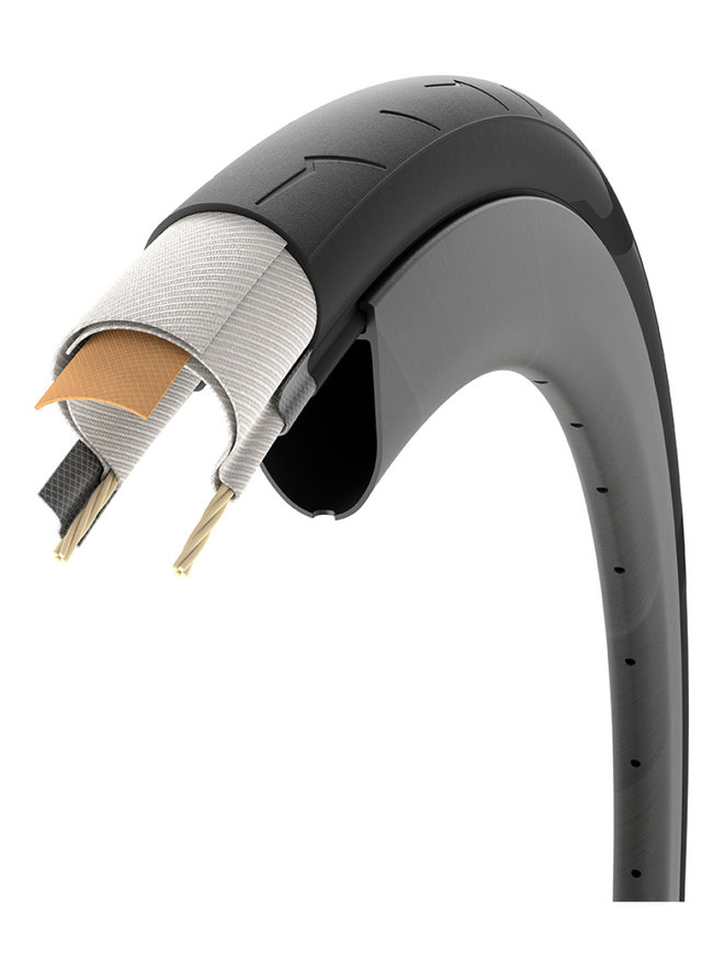 Wysokowydajna struktura oplotu z dodatkową warstwą wysokowydajnej tkaniny odpornej na przecięcia pod bieżnikiem, aby opona zapewniała doskonałą odporność na przebicia w szerokim zakresie warunków. Połączenie tej warstwy z warstwami szkieletu oplotu pozwala uzyskać najbardziej efektywne parametry oporu toczenia i masy dla tej konstrukcji do użytku z dętką.