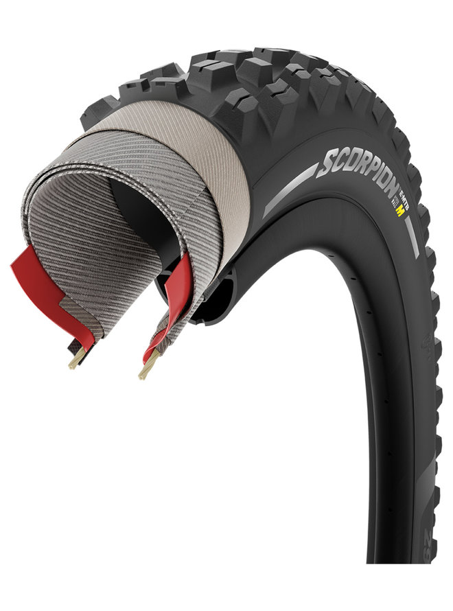 Przedstawiamy pierwsze wyniki prac Pirelli przeprowadzonych pod nadzorem legendy DH Fabiena Barela i we współpracy z zespołami wyścigowymi downhill i enduro. Scorpion™ E-MTB to gama 3 różnych wzorów bieżnika do różnych warunków terenowych, od M (mieszana nawierzchnia), przez R (wszechstronna opona tylna), po S (miękka i luźna nawierzchnia), opracowana w celu zaoferowania pełnej gamy opon o wysokich osiągach do codziennego użytku na szlakach. Gama Scorpion™ E-MTB została zaprojektowana z myślą o wydajnych rowerach górskich ze wspomaganiem silnika elektrycznego. Opony zostały zaprojektowane tak, aby wytrzymać moc nowoczesnych rowerów elektrycznych, których momenty obrotowe są coraz wyższe. Scorpion™ E-MTB zapewnia przyczepność i niezawodność tam, gdzie jest to potrzebne: opatentowana konstrukcja HyperWALL™ zapewnia niezawodność DH (downhill) bez nadmiernej wagi, a opatentowana mieszanka gumy SmartGRIP Gravity zapewnia przyczepność na suchych i mokrych nawierzchniach, a także doskonałą odporność na rozdarcia dzięki opatentowanemu i zrównoważonemu składnikowi chemicznemu o nazwie Lignin. W ten sposób opona ma wydajność, która utrzymuje się przez cały okres jej użytkowania, nawet po częściowym zużyciu wzoru.
