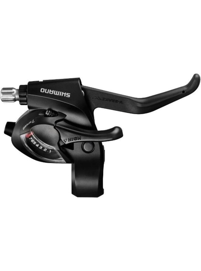 Przerzutka kombinowana z dźwignią hamulca ST-EF prawa dla 7 kół z uchwytem na dwa palce na dźwigni hamulca. Wygodna i stabilna zmiana przełożeń za pomocą dźwigni hamulca została zaprojektowana przede wszystkim z myślą o rowerach MTB.Szczegóły