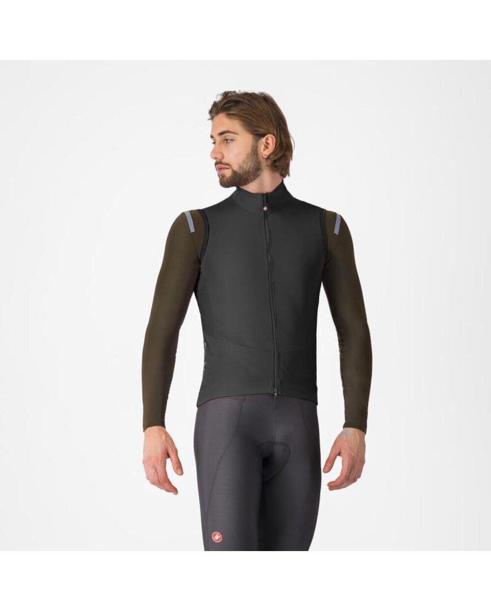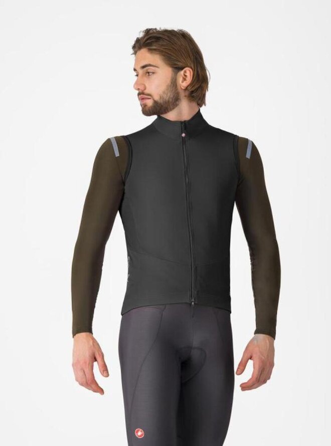 Idealna kamizelka na chłodne dni. Technologia Castelli Ristretto izoluje, jednocześnie umożliwiając ograniczony przepływ powietrza, aby utrzymać suchość środkowej części ciała.Średnio gruba kamizelka na niskie temperatury zapewnia umiarkowaną izolację i doskonałą oddychalność.