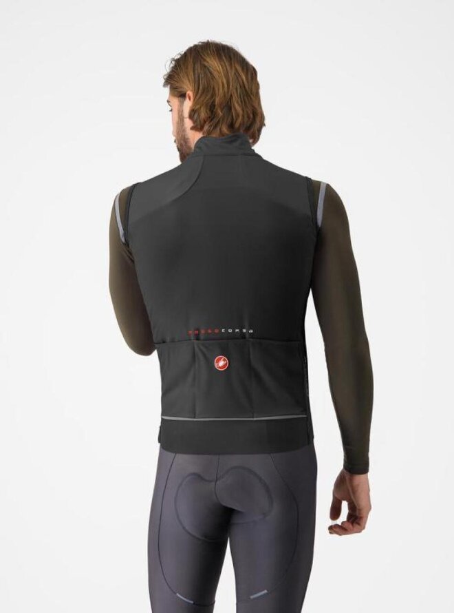 Technologia materiałowa Castelli Ristretto sprawia, że jest tak wszechstronna. Materiał zapewnia oddychalność, dzięki czemu jest wiatroszczelny, ale przepuszcza bardzo mało powietrza, co pomaga odprowadzić więcej potu i zapewnić suchość. Przód wykonany jest ze średniej grubości materiału Ristretto, natomiast tył z elastycznej tkaniny zapewniającej jeszcze większą oddychalność. Pozostaniesz suchy, co oznacza, że możesz utrzymać ciepło nawet w cieńszej kamizelce.